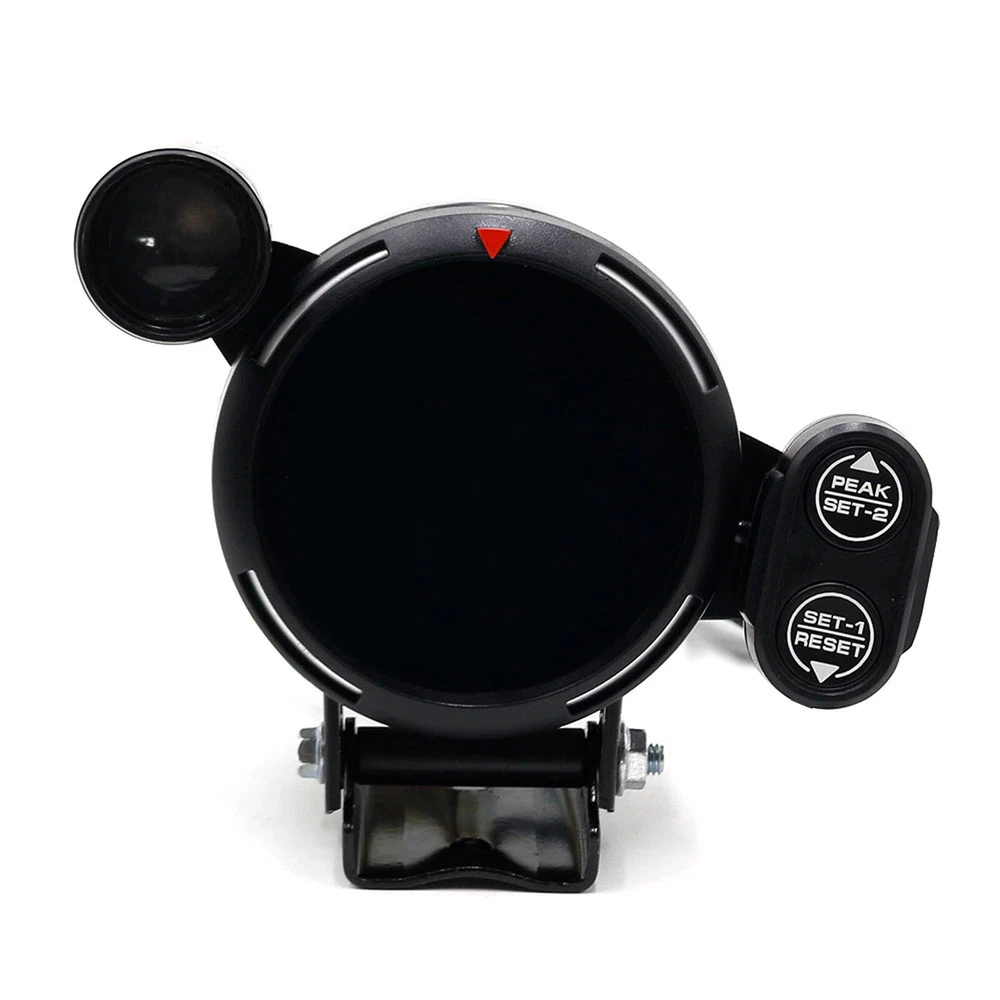 Features: 3.5" diameter, with black face, smoked lens and super bright LED background light. 0-11,000 RPM measurement, shift light RPM is adjustable. The stepping motor is sufficient for quick response of all sorts of professional motor sports. The gauge dial is invisible while the ignition switch is off. Once the ignition switch is turned on, a clear display appears by colored LED illumination. The gauge dial and the needle pointer provide high visibility. When the RPMs are exceeded, the warning LED blinks/lights up and the warning buzzer sounds. Peak memory function: the maximum RPM during driving can be stored and checked later. The gauge is clinched by using the exclusive mounting band and back base. Specifications: Color: Black + Silver Material: Aluminium Gauge Display: Blue LED Shift light: Green First and then turn Red Measurement Range: 0~11,000 RPM Powered By: 12V Switch Unit Length: Approx. 5cm / 2" Indicator Size: 7.62 * 3cm / 3 * 1.2in (L * W) Diameter: Approx. 88mm / 3.5" Gauge Weight: 137g / 4.82oz Package Size: 21.5 * 15.5 * 12.5cm / 8.46 * 6.1 * 4.92in (L * W * H) Package Weight: 681g / 24.03oz Package List: 1 * Tachometer Gauge 1 * Indicator 1 * Switch Unit 1 * Back Base 1 * Regular Position Bezel 1 * Attachment for Switch Unit 1 * Mounting Rubber 1 * Bundle of Line 2 * Pieces of Double Sided Tape 2 * Taping Screws 1 * User Manual(English) Note: About the problem of adjusting the pointer to zero:First, turn on the meter, wait for the pointer to go to the middle position, then turn off the power and turn it on again, the pointer will go to zero automatically.