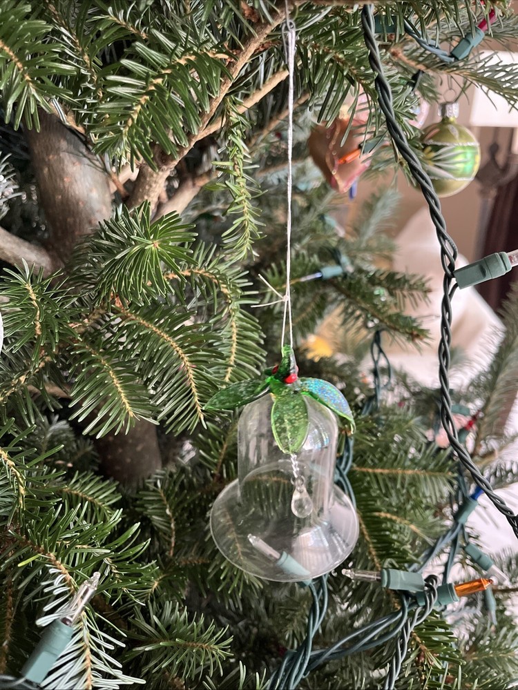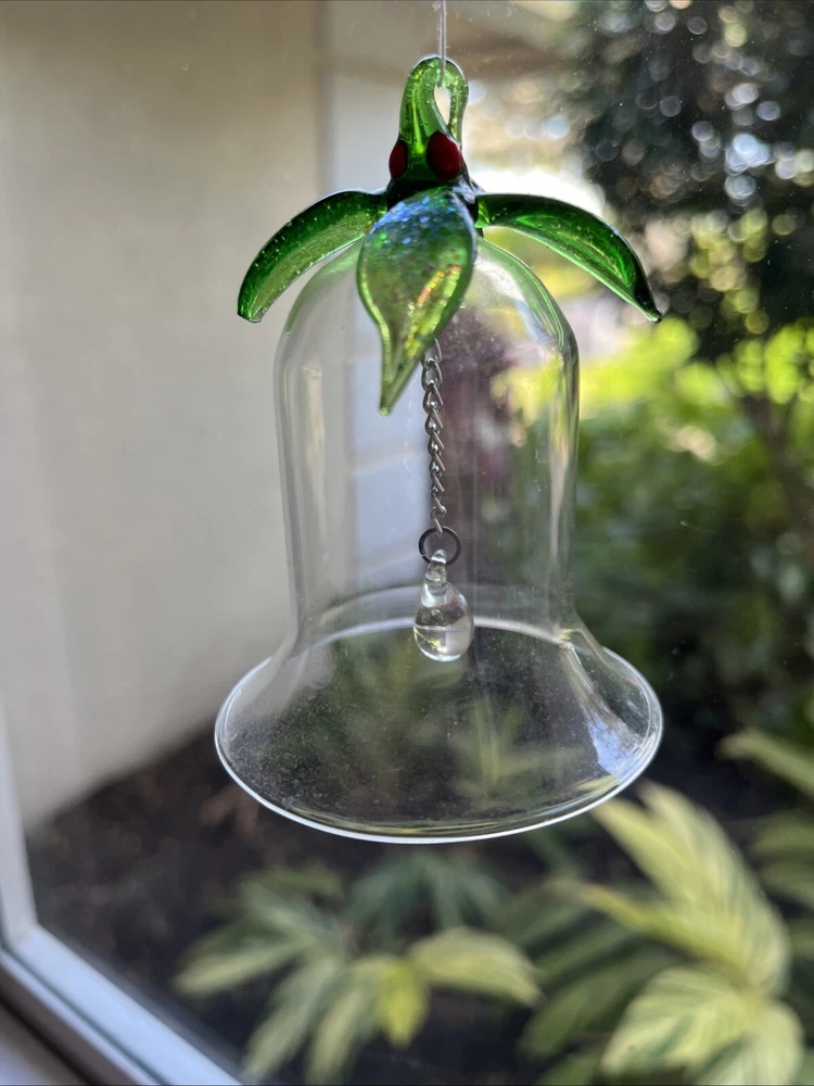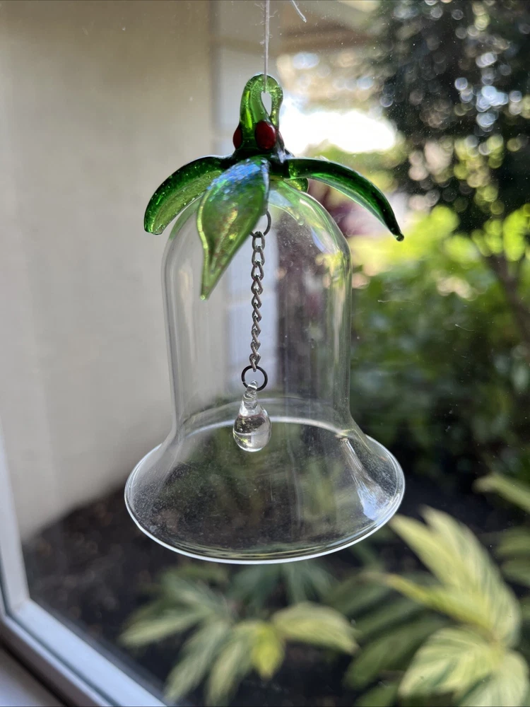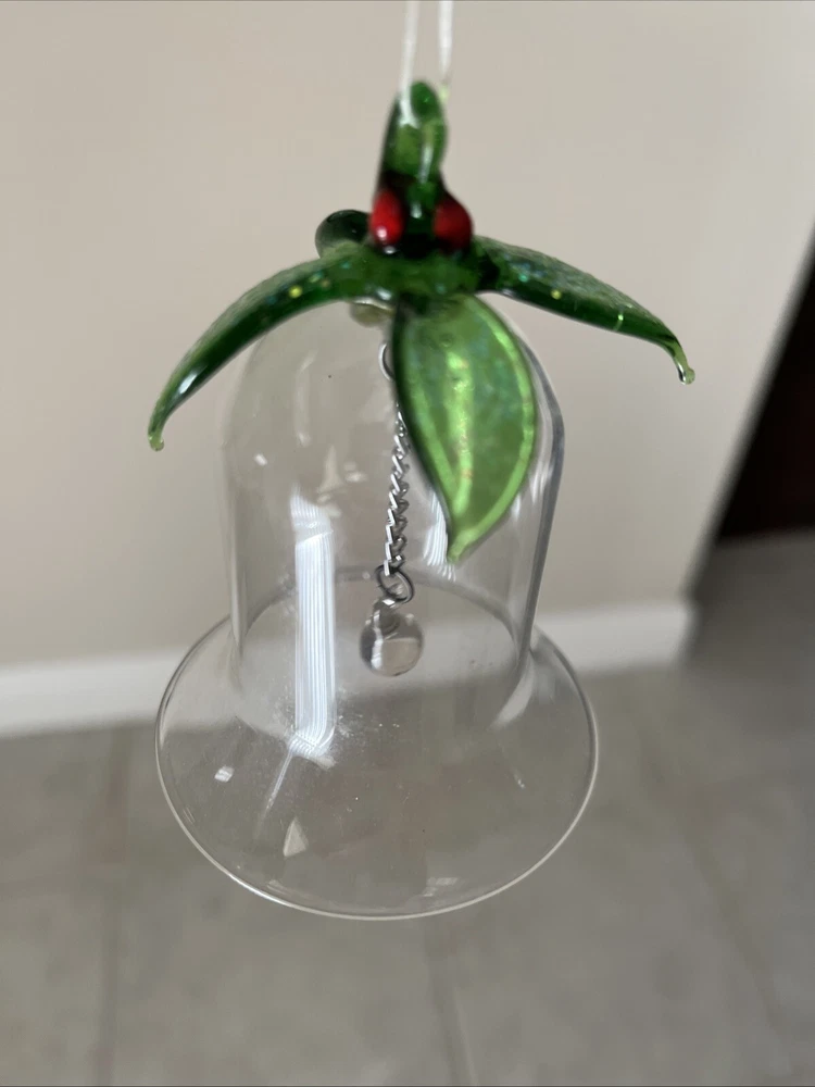 Glass Bell Christmas Ornament 3 1/2" Tall x 2 1/2" Diameter, Long hanging glass ball.