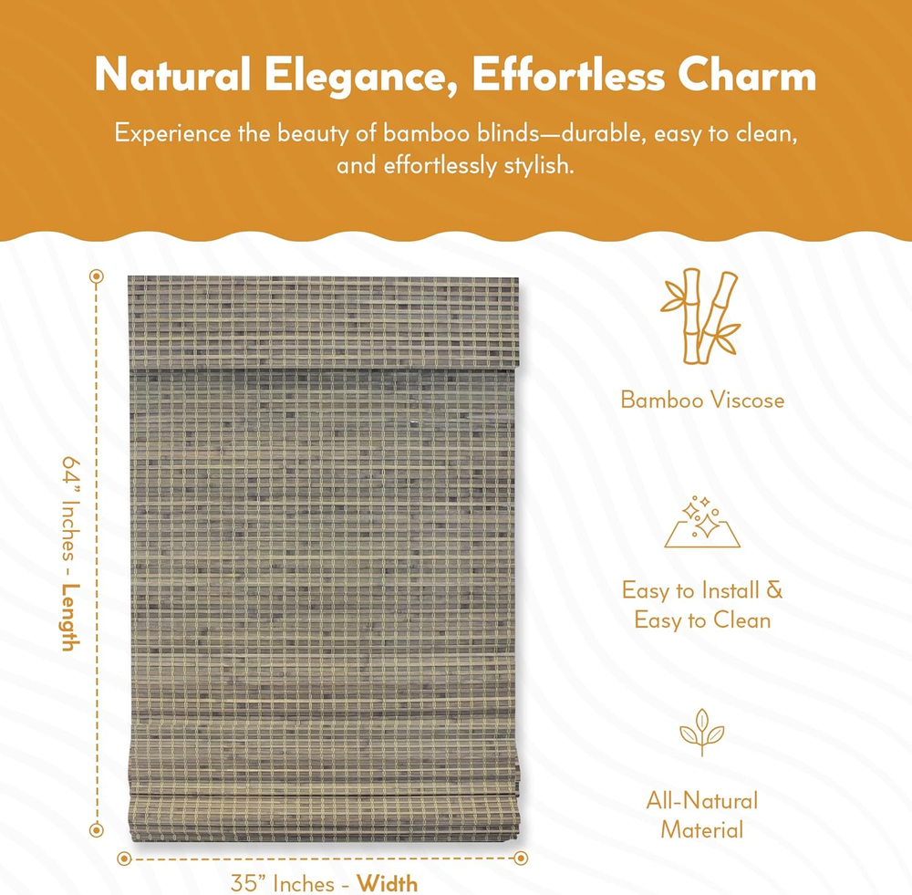 Store New Arrivals Add to Favorite View Feedback Contact 2208860E Cordless Bamboo Roman Shade, 35" W X 64" L, Driftwood Description Item model number 2208860E Number of Items 1 Assembly required No Pattern Solid Country of Origin China Opacity Semi-Sheer NA Control Type Manual Room Type Office, Kitchen, Bedroom, Living Room, Nursery Specifications certified frustration-free Product Dimensions 64"L x 35"W Material Bamboo Shape Rectangular Pattern Name Roman Shade Is Discontinued By Manufacturer No Specific Uses For Product Window Included Components Roman Shade^Mounting Hardware Closure Type Cordless Water Resistance Level Not Water Resistant Item Weight 6.83 pounds Size 35"W x 64"H Special Feature cordless Mounting Type Inside Mount Color Driftwood Global Trade Identification Number 00048037505082 Batteries required No Operation Mode Manual Number Of Panels 1 Recommended Uses For Product Indoor Fabric Type Bamboo Viscose Number of pieces 1 Bamboo Viscose Actual blind width is 34.5 inches. For an inside mount, fits windows 35 inches wide CORDLESS WINDOW SHADES: Woven 1/4 in. and 3/8 in. alternating driftwood flagstick bamboo slats provide light filtering and semi-private window treatment to your home, cottage, lake or beach house BEST FOR KIDS: Certified as Best for Kids, a window covering program created by an independent lab that includes only cordless shades that are safe for kids BAMBOO SHADE: WHY BAMBOO? If you like bamboo sheets, bamboo pillows, bamboo cutting boards, why not try bamboo blinds? LIGHT FILTERING: This is not a privacy shade, light gently streams through this tightly woven bamboo blind, providing semi-privacy and energy-efficient insulation qualities PRE-CUT SIZES: The width of this bamboo shade includes a 1/2 inch deduction (window industry standard) from the option size you select. For an inside mount, order the shade width that matches the width of the window in which the shade will be hung. For an outside mount, order 1/2 inch wider than the overall area to be covered Transform your home with the natural elegance of Radiance Cordless Bamboo Blinds. These 35"W x 64"L Driftwood flatstick Roman shades offer a perfect blend of style, privacy, and ease of use for your interior windows. Bring a touch of nature indoors with woven 1/4" and 3/8" alternating driftwood flatstick bamboo slats. This unique texture filters light beautifully, creating a warm, inviting atmosphere in any room. These semi-sheer bamboo shades gently filter light, reducing glare while maintaining a soft, diffused glow. They offer semi-privacy, perfect for spaces where you want an airy feel without compromising seclusion. Certified as Best for Kids by an independent lab, these cordless blinds ensure safety for little ones and pets, giving you peace of mind. Easy Installation: Installing these bamboo shades is a breeze with included mounting hardware and instructions. The actual blind width is 34.5", fitting 35" wide windows for inside mount. For outside mount, order 1/2" wider than the area to be covered. Perfect for homes, cottages, lake or beach houses, these blinds complement various styles from coastal to metropolitan. Their rich wood tones and texture pair well with diverse decor elements. Why Choose Radiance? Radiance Cordless Bamboo Blinds stand out with their natural beauty, safety features, and ease of use. They offer superior light filtering and a stylish look that enhances any room. Key Features: Dimensions: 35"W x 64"L (34.5" actual width) Material: Bamboo Viscose Color: Driftwood Opacity: Semi-Sheer Cordless design for safety Light filtering and semi-private Suitable for inside and outside mount Pre-cut sizes available Energy-efficient insulation qualities Why Bamboo? If you enjoy bamboo sheets, pillows, or cutting boards, you'll love the natural appeal of bamboo blinds. They add texture, warmth, and eco-friendly charm to your windows. ABOUT US We offer the best prices around on high quality products. Our E-store includes media such as books, movies, music and games while offering electronics, toys, sporting apparel, clothing, tools, general home, garden items and more. SHIPPING We are always working hard to ensure your package arrives as soon as possible. Please understand that some factors like weather, high postal traffic, and the performance of shipping companies are outside of our control. We offer free shipping to the lower 48 states and ship within 2 business days of payment, usually sooner. We do not accept P.O. Boxes. Please provide a physical address. For shipping outside of the continental USA, we only use eBay's Global Shipping Program.The item is shipped to KY and then sent to the rest of the world. International customers are responsible for all duties and taxes. Continue to check out in order to calculate costs for shipping the item to your country. Messages regarding eBay's Global Shipping Program MUST be directed at eBay EXCLUSIVELY. RETURNS We offer a 30-Day Return Policy on items which you are not completely satisfied with. You have the option for a full-refund or an exchange of the item. No returns are available on items shipped outside of the USA. PAYMENT We accept PayPal. CONTACT US This page content is yet to come Please ad us to your favorite seller and visit again later Thank You CUSTOMER SATISFACTION We try our very best to make sure every customer is completely satisfied. If there's a problem, message us! We're happy to help.