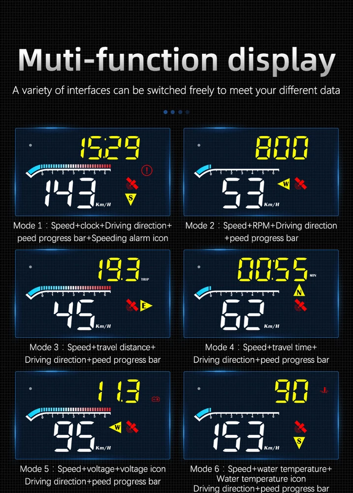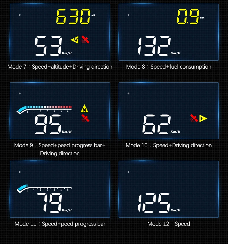Car HUD Display with GPS Speedometer and Overspeed Alarm