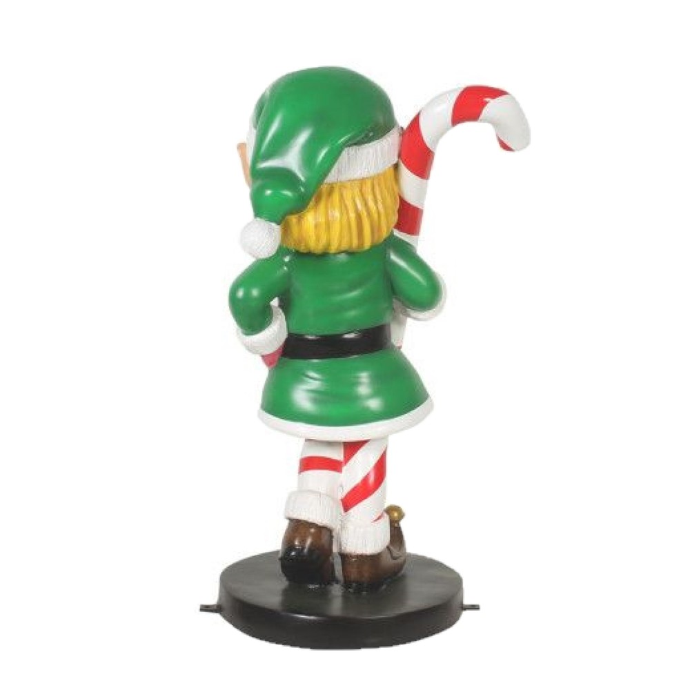 Garden Elements Fiberglass Elf Girl With Candy Cane Christmas Decor, 35in PRODUCT DESCRIPTION This cute elf girl is the perfect addition to your holiday display! Key Product Features Handcrafted design displays detailed craftmanship, with each exquisite detail captured Durable fiberglass construction is resistant to weathering, corrosion, and UV damage For indoor or outdoor use Dimensions (LxWxH): 17 in x 16 in x 35 in Lightweight design makes it easy to relocate and put in storage during the off season Welcome your guests with this charming statue. This welcoming elf will surely delight your visitors with its cheerful smile. Wearing her Christmas outfit, this statue will match your holiday setup! Standing at 35 inches, this elf-inspired fiberglass-made figurine will surely be the attention-grabbing decoration of your home. If kept outside, you will need to re-coat the clear protective coating every 12 to 18 months in order to preserve the appearance and integrity. This can be done with a good quality enamel clear gloss.