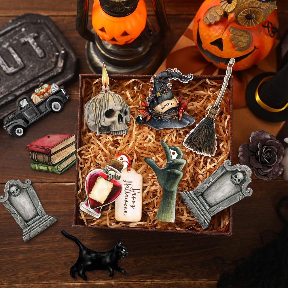 Store New Arrivals Add to Favorite View Feedback Contact Fast deliveries to the customer's home Quality customer service John Make the customers happy! 36 Pcs Halloween Wood Ornaments for Tree Gothic Halloween Decorations Skull Black Cat Pumpkin Hanging Signs Witch Hats Finger Crow Wood Cutouts with Ropes for Home Small Tree Party Indoor Decor Description Wooden Halloween Decorations: you will receive 36 pieces of Halloween ornaments in 12 styles, each style for 3 pieces, elegant and cute for you to decorate your home and party Taken from Wood: the Halloween wood ornaments are made of wood material, strong enough for long time use, not easy to break and fade, and you can hang them with ropes on the tree Halloween Design: the Halloween wood ornaments for Tree are designed with various Halloween elements, charming and different, which can attract more people, they will be satisfied by our products Nice Gifts: these Halloween wood cutout can be applied as nice gifts for your partners, classmates, workmates or neighbors, they will be happy, which also can enhance your relationships Applicable Occasions: the wooden Halloween decor can be hung on the Christmas tree, ceiling, windows, doors, fireplace and others as you like, making your home more attractive Product Description Item Weight 5 ounces Style Gothic Package Dimensions 7.13 x 7.05 x 1.02 inches ABOUT US We offer the best prices around on high quality products. Our E-store includes media such as books, movies, music and games while offering electronics, toys, sporting apparel, clothing, tools, general home, garden items and more. SHIPPING We are always working hard to ensure your package arrives as soon as possible. Please understand that some factors like weather, high postal traffic, and the performance of shipping companies are outside of our control. We offer free shipping to the lower 48 states and ship within 2 business days of payment, usually sooner. We do not accept P.O. Boxes. Please provide a physical address. For shipping outside of the continental USA, we only use eBay's Global Shipping Program. The item is shipped to KY and then sent to the rest of the world. International customers are responsible for all duties and taxes. Continue to 'check out' to calculate costs for shipping the item to your country. Messages regarding eBay's Global Shipping Program MUST be directed at eBay EXCLUSIVELY. RETURNS We offer a 30-Day Return Policy on items in which you are not completely satisfied with. You have the option of a full-refund or an exchange of the item. No returns are available on items shipped outside of the USA PAYMENT We accept PayPal. CONTACT US This page content is yet to come Please ad us to your favorite seller and visit again later Thank You CUSTOMER SATISFACTION We try our very best to make sure every customer is completely satisfied. If there's a problem, message us! We're happy to help. WE ACCEPT