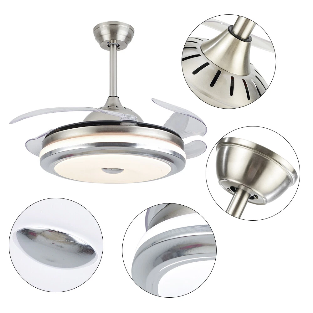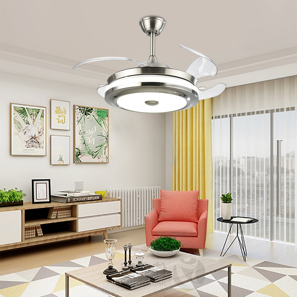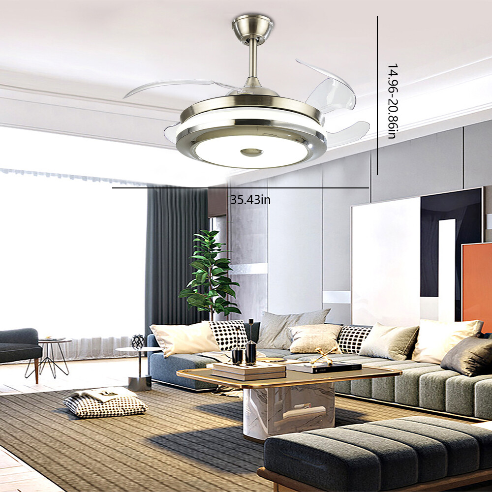 【Remote Control】Integrating turn on light with 3 color changes (white, warm white, neutral white)you can use the remote control to choose the color you like. 【2 in 1 Fandelier】: Retractable ceiling fan and chandelier 2-in-1. The modern design concept provides beauty and convenience for your life. Usually as an ordinary fan, it promotes air circulation very well. When closed, the blade retracts invisibly, leaving only a beautiful led chandelier. 【Ceiling Fan】With ABS blades, It can be used as an electric fan, and it can also be used for lighting 【Applications】Ideal for living room, dining room, foyer, villa, bedroom, restaurant, study room, and other places to decorate lighting fixtures. ❤❤❤Welcome to royalfeatured ❤❤❤ Description This Chandelier-type Ceiling Fan Consists of a Retractable Fan and a 3-Color Light. It Allows You to Enjoy the Coolness and Stay Away from Air Conditioning Disease. Unlike Other Fans, This Product Is Stable and Has Low Noise. the 360-Degree Circulating Airflow Fills the Room and Makes You Feel Cool All the Time. Key Features Remote Control : This Item Is Equipped with Remote Control, so You Don't Have to Stand up to Change the Three Lights, Three Wind Speeds, or Timer Settings at Will. This Will Bring a Lot of Convenience to Your Life. Wide Range: the Item's Lights and Fans Can Serve a Wide-range Area. so Even If Your Room Is Big Enough, You Don't Have to Worry About the Lights Being Too Dim or Not Blowing the Wind. Diverse Functions: with Abs Blades and 2 in 1 Chandelier, This Crystal Ceiling Fan with Light Can Be Used As an Electric Fan and Also for Lighting. It Can Be Multi-purpose and Has Superb Cost Performance. Simple and Generous Appearance : It Has No Complicated Decoration and a Rich Color Scheme. the Overall Feeling of Simplicity and Comfort. Timing Device: This Chandelier-type Ceiling Fan Can Be Timed for 1 Hour, 3 Hours, or 6 Hours with a Single Button. If You Often Forget to Turn off the Power, You Don't Have to Worry About Wasting Power. High-quiet Mode: This Chandelier-type Ceiling Fan Is Equipped with a High-quiet Motor. It Is Made of Electronic Material. Steel and Copper Wire Material to Effectively Avoid Noise. Strong Durability: This Chandelier-type Ceiling Fan Is Made of Copper Wire and Steel Material. It Is More Durable and Long-lasting Compared to Normal Lights and Fans. Quality Service: If You Have Any Questions, Inquiries, or Need Help, Please Feel Free to Contact Us and We Will Try Our Best to Help You. Details Abs Blades: This Material Features High Strength and the Abs Fluid Resistance Is Low, Which Makes a Low Energy Consumption. It Is Beautiful, Thin, Light, and Durable to Use. Fans and Lights in One : This Design Is a Great Space Saver While Highlighting a Sense of Sophistication. Application This Chandelier-type Ceiling Fan Is Ideal for the Living Room, Dining Room, Foyer, Cottage, Bedroom, Dining Room, Study, and Other Places As a Decorative Lighting Fixture. Its Illuminated Area Is About 8-25㎡. Specifications Led Color: 3 Color(White, Warm White, Neutral White ) Power: 36 W Voltage: 110v Diameter:36in /90cm(Blades Unfolded) Long Downrod Length: 9.8" (25 Cm) Short Downrod Length: 3.9" (10 Cm) Total Height: 15" (38cm)/ 21" (53cm) Illuminated Area: 8-25㎡/86.11-269.1ft2 Fan Blade: 4 Leaf Plastic Fan Blade Material: Metal+Abs Fan Motor: High-quiet Motor Color: Chrome Bulb: Led Blades: Acrylic+Metal Electronic Materials: Steel+ Copper Wire Lampshade: Acrylic Package Included 1*Light 1*Rc Control All Accessories for Assembly Notes This Fan Requires Basic Assembly and the Use of a Professional Is Highly Recommended. Floor Height Is Greater than 110 Inches/279.4cm and Ceiling Load Is Greater than 55.12lbs/25kg. Please Allow a Slight Color Difference Due to Shooting Light, and 1-3cm Error Due to Manual Measurement, Please Make Sure You Don't Mind Before Ordering. Payment Delivery details Terms of sales About us Contact us Payment We accept ebay payment 。 Fees such as import duties, taxes are not included in the item price or shipping costs. These charges are the buyer's responsibility. Delivery details Shipping: 2-9 working days to: USA Terms of sales We maintain high standards of excellence and strive for hundred percent customer satisfaction. Feedback is very important to us. We hope that you contact us immediately before you give neutral or negative feedback, so that we can address your concerns. It is impossible to address issues if we do not know about them! About us Your satis faction is our ultimate goal. We work hard to earn your trust and future business. Our certified technicians have tested each item before shipping. The unit comes with 1 year limited warranty on all manufacturing defects. a) If you receive a defective item, you may return it or ask for a discount. Please contact us within 14 days after you receive the package. b) What you returned must be intact and in its original packaging as re? u. Customer is responsible for shipping costs of the returned item. c) We will cover the cost of shipping back t with the shipping rate indicated in the registration page. We will send you a new unit or refund the full payment you paid. Thank you. Contact us Business Hour Business Hour: Monday To Friday: 8:30 AM to 5:00 PM (Beijing China time) Due to time zones, our reply to your questions may not be immediately. But within above working time, we will reply your email within 24 hours. If it's non-workdays, please kindly be patient and wait till Monday. Please contact us with ebay message. Please feel free to contact us if you have any questions. Monday To Friday: 8:30 AM to 5:00 PM (Beijing China time) Due to time zones, our reply to your questions may not be immediately. But within above working time, we will reply your email within 24 hours. If it's non-workdays, please kindly be patient and wait till Monday. Please contact us with ebay message. Please feel free to contact us if you have any questi