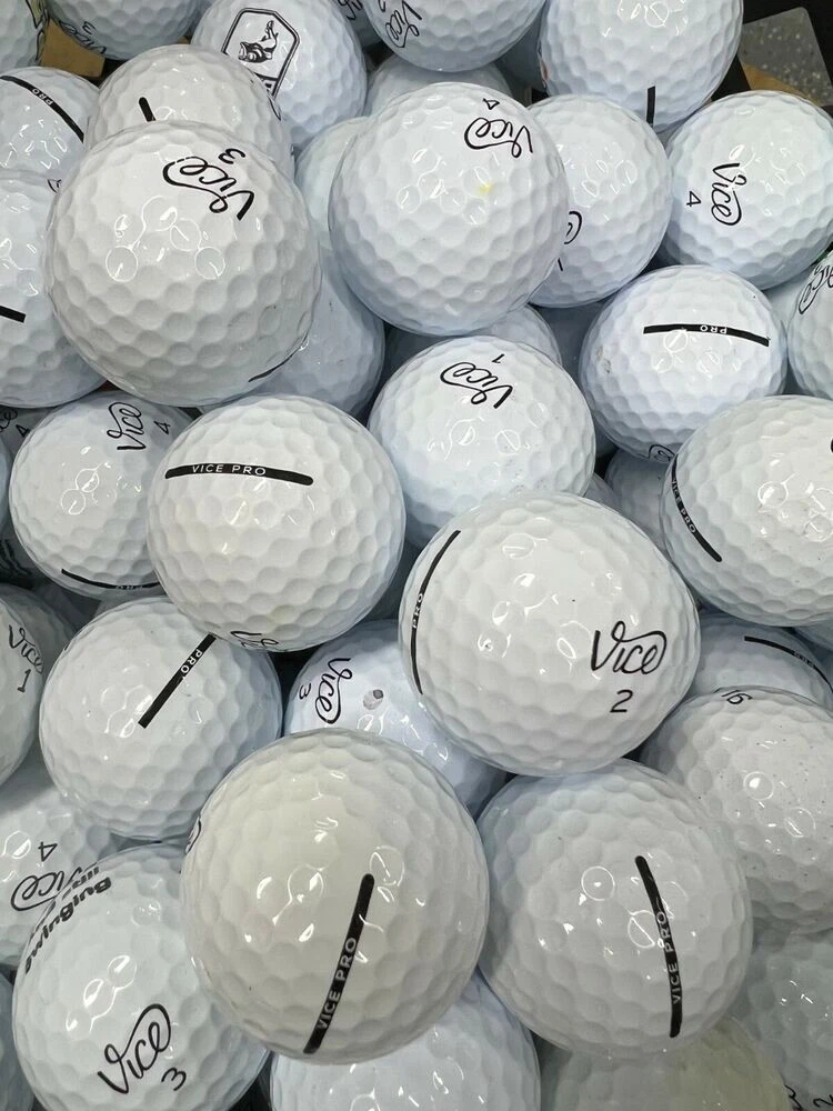 This listing is for 36 Near Mint Vice Pro golf balls . Models will include all Vice Pro golf balls makes and models such as Pro, Pro Soft, ect . All golf balls will be in great condition and are ready for the course. All golf balls are in AAAA condition and will be ready to be played. DayHawksgolfballs Here at Dayhawksgolfballs, we make it our priority to serve our customers to the best of our ability. If you are not satisfied with the golf balls your receive, please let us know and we will strive to make it right. Mint Condition - AAAAA - These golf balls will look almost like new. These golf balls will resemble very closely to brand new golf balls. Most golfers will not be able to tell the difference between these and new golf balls. Practice golf balls such as x-outs, refinished, or refurbished golf balls are not included. Some golf balls may include player markings and/or business/personal logos. Near Mint Condition - AAAA - These golf balls are still in great condition, but a step below mint condition. All Near Mint golf balls still have lots of life still in them, and are still a great choice for a cheaper golf ball than mint condition. These golf balls will have small noticeable signs of wear. Slight discoloration may be on some of these golf balls. Practice golf balls such as x-outs, refinished, or refurbished golf balls are not included. Some golf balls may include player markings and/or business/personal logos.