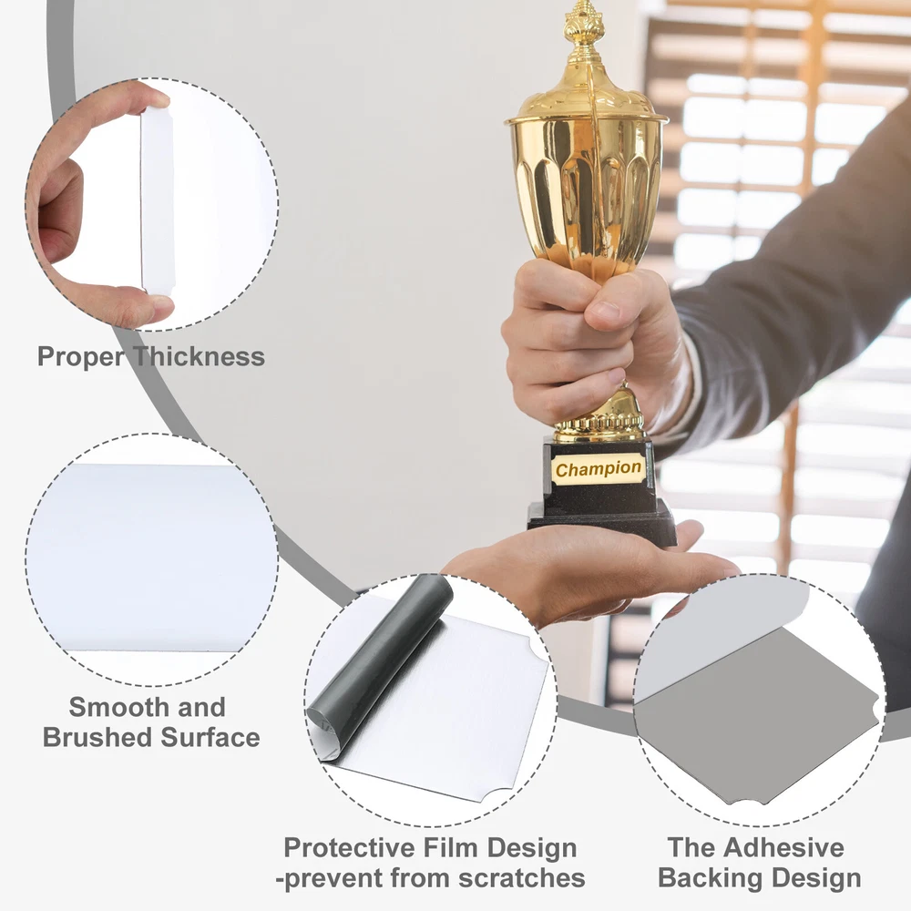 Document Our engraved nameplates are perfect for mounting on plaques, picture frames, sweaters, trophies, bags, display boxes, flag cases, and anything else.SpecificationMaterial: Stainless SteelColor: WhiteSize: 10.2 x 5.1 cm/4 x 2 Inch(L*W)Thickness: 0.4 mm/0.02 InchPacking List: 36 Pcs x Engraved NameplateAdvantageOur engraved nameplates are made of brushed stainless steel which is durable, stable, not easy to fade, rust, or break, and can be used for a long time. With a smooth surface, it will not scratch your skin.The right thickness makes the plate stronger and allows for deeper engraving. These elegant nameplates have a beautiful luster and a simple design. Suitable for various crafts to add brilliance.The protective film design can effectively prevent scratches. The adhesive backing design allows you to stick this nameplate anywhere without any tools and it can be firmly on the objects.InstructionPlace a metal workbench block underneath the blank stamping tags for better stamping.NOTE:1. There may be light scratches and blemishes due to shipping, but they can be polished.2. Only for laser engraving, not suitable for mechanical engraving.3. Please remove the protective film before use. 36 Pcs 4" x 2" Engraved Name Plate Picture Frame Label Art Tag, White Our engraved nameplates are perfect for mounting on plaques, picture frames, sweaters, trophies, bags, display boxes, flag cases, and anything else. Specification Material: Stainless Steel Color: White Size: 10.2 x 5.1 cm/4 x 2 Inch(L*W) Thickness: 0.4 mm/0.02 Inch Packing List: 36 Pcs x Engraved Nameplate Advantage Our engraved nameplates are made of brushed stainless steel which is durable, stable, not easy to fade, rust, or break, and can be used for a long time. With a smooth surface, it will not scratch your skin. The right thickness makes the plate stronger and allows for deeper engraving. These elegant nameplates have a beautiful luster and a simple design. Suitable for various crafts to add brilliance. The protective film design can effectively prevent scratches. The adhesive backing design allows you to stick this nameplate anywhere without any tools and it can be firmly on the objects. Instruction Place a metal workbench block underneath the blank stamping tags for better stamping. NOTE: 1. There may be light scratches and blemishes due to shipping, but they can be polished. 2. Only for laser engraving, not suitable for mechanical engraving. 3. Please remove the protective film before use. Hot Item Payment 1.We accept eBay payment . 2.Payment must be received within 7 business days of auction closing. Shipping 1.We ship to your eBay or Paypal address. Please make sure your eBay and Paypal address is correct before you pay. 2.Items will be shipped within 1-3 business day when we received payment. 3.Delivery time depends on destination and other factors. Description Policy 36 Pcs 4" x 2" Engraved Name Plate Picture Frame Label Art Tag, White Our engraved nameplates are perfect for mounting on plaques, picture frames, sweaters, trophies, bags, display boxes, flag cases, and anything else. Specification Material: Stainless Steel Color: White Size: 10.2 x 5.1 cm/4 x 2 Inch(L*W) Thickness: 0.4 mm/0.02 Inch Packing List: 36 Pcs x Engraved Nameplate Advantage Our engraved nameplates are made of brushed stainless steel which is durable, stable, not easy to fade, rust, or break, and can be used for a long time. With a smooth surface, it will not scratch your skin. The right thickness makes the plate stronger and allows for deeper engraving. These elegant nameplates have a beautiful luster and a simple design. Suitable for various crafts to add brilliance. The protective film design can effectively prevent scratches. The adhesive backing design allows you to stick this nameplate anywhere without any tools and it can be firmly on the objects. Instruction Place a metal workbench block underneath the blank stamping tags for better stamping. NOTE: 1. There may be light scratches and blemishes due to shipping, but they can be polished. 2. Only for laser engraving, not suitable for mechanical engraving. 3. Please remove the protective film before use. Hot Item Payment 1.We accept eBay payment . 2.Payment must be received within 7 business days of auction closing. Shipping 1.We ship to your eBay or Paypal address. Please make sure your eBay and Paypal address is correct before you pay. 2.Items will be shipped within 1-3 business day when we received payment. 3.Delivery time depends on destination and other factors.
