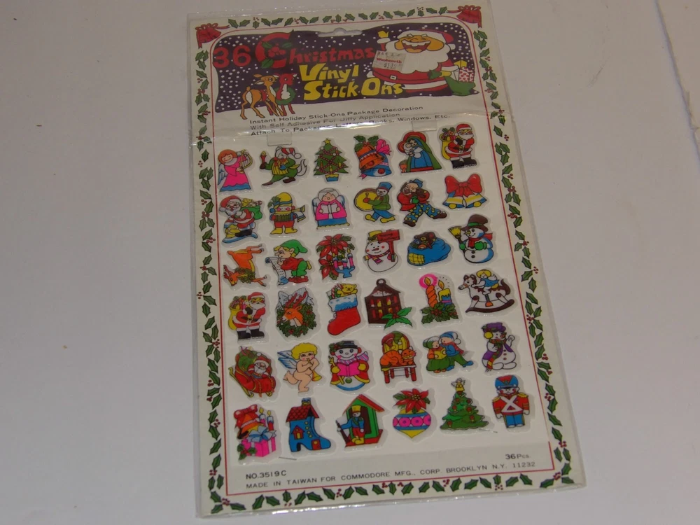 36 vintage Christmas Puffy Vinyl Stick On Sticker Pack Santa ~ Sealed
