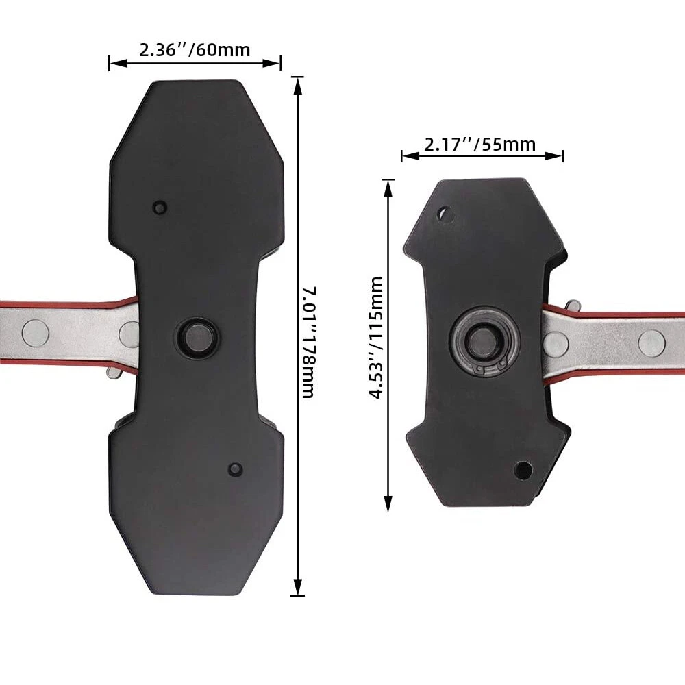 Be used on twin and quad piston fixed calipers, as well as single and twin piston floating calipers. Suitable for ear-type hose clips found on fuel, cooling system and vacuum hoses. Ratchet technology gives a full 360 degree swing so that the spreader may be placed at any position. Features: This ratchet brake piston caliper spreader tool is suitable for brake tools and brake cylinder adjustment group. Centrally distribute power to prevent piston misalignment. 360° ratchet swing allows for use at any angle, more convenient. Easy to use, can compress your brake pistons effortlessly in seconds. Made of premium quality material, solid and durable. Suitable for most kinds of single, double and four-piston calipers. Specification: Material: Plastic & Metal Package Size: approx. 30 * 10 * 5cm / 11.81 * 3.94 * 1.97in Package Weight: approx. 1000g / 35.27oz The pads spread from a range of 1-1/2" to 2-5/8" pushing the caliper pistons back to allow plenty of room to install the new brake pads. Package List: 1 * Brake Caliper Press Tool