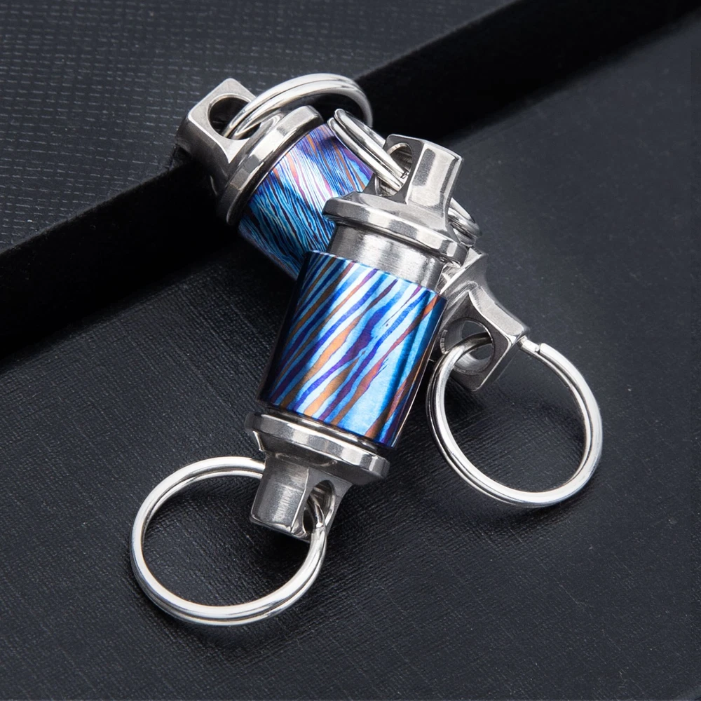 You must know before you buy With 2pcs 13mm stainless steel keyrings. Features: The titanium alloy Damascus universal buckle can rotate 360 degrees, and can also be quickly disassembled for use. The titanium alloy Damascus universal ring can solve the problem of key ring deformation, quick disassembly and cumbersome key ring. Material: Titanium alloy + Damascus Process: CNC engraving Maximum load: 40kg Dimensions: Length ~1.26"(32mm), maximum diameter ~0.47"(12mm), Key ring diameter 13mm(~0.51"), Full Length 58mm(~2.28") Weight: ~0.32oz(9g) Package: 1pcs Titanium Hanging Buckle(with 2pcs 13mm stainless steel keyrings). Note: 1): Due to the different monitor and light effect, the actual color of the item might be slightly different from the color showed on the pictures. 2): The size Weight of the product is measured manually, there will be a certain error, please understand. 3): Because the factory batch is different, so there may be a small difference, please refer to the goods actually received pls make sure you do not mind before you bid. Hope you can understand. Thank you! We also have many other charm jewelry,(bracelets, necklaces, rings, earring, pendants,anklets),titanium alloy tools (titanium alloy pens, outdoor tools, pure Titanium products) and Carbon fiber pen,Carbon fiber insoles and brass collectibles (brass animal statues, brass pens) etc.,you can find in my store!You can contact me if you need anything!make great gifts for family and friends who will love them
