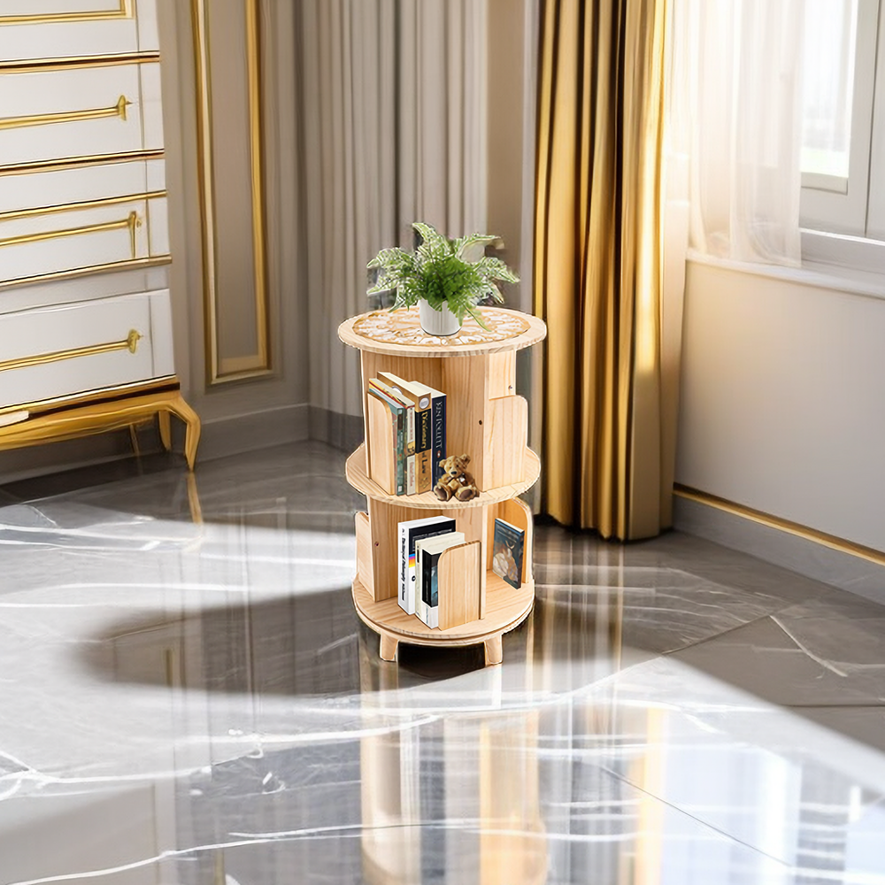 360° Rotating Bookcase Freestanding 2-Tier Storage Display Shelf