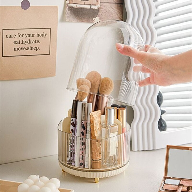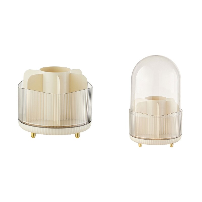 This rotating makeup brush holder is a game-changer! The smooth 360-degree spin makes finding brushes effortless, while the chic cream design adds elegance to any vanity. Perfect for pros and beginners alike, it keeps brushes neatly organized yet within reach—ideal for bathrooms, studios, or classrooms. No more digging through cluttered drawers!