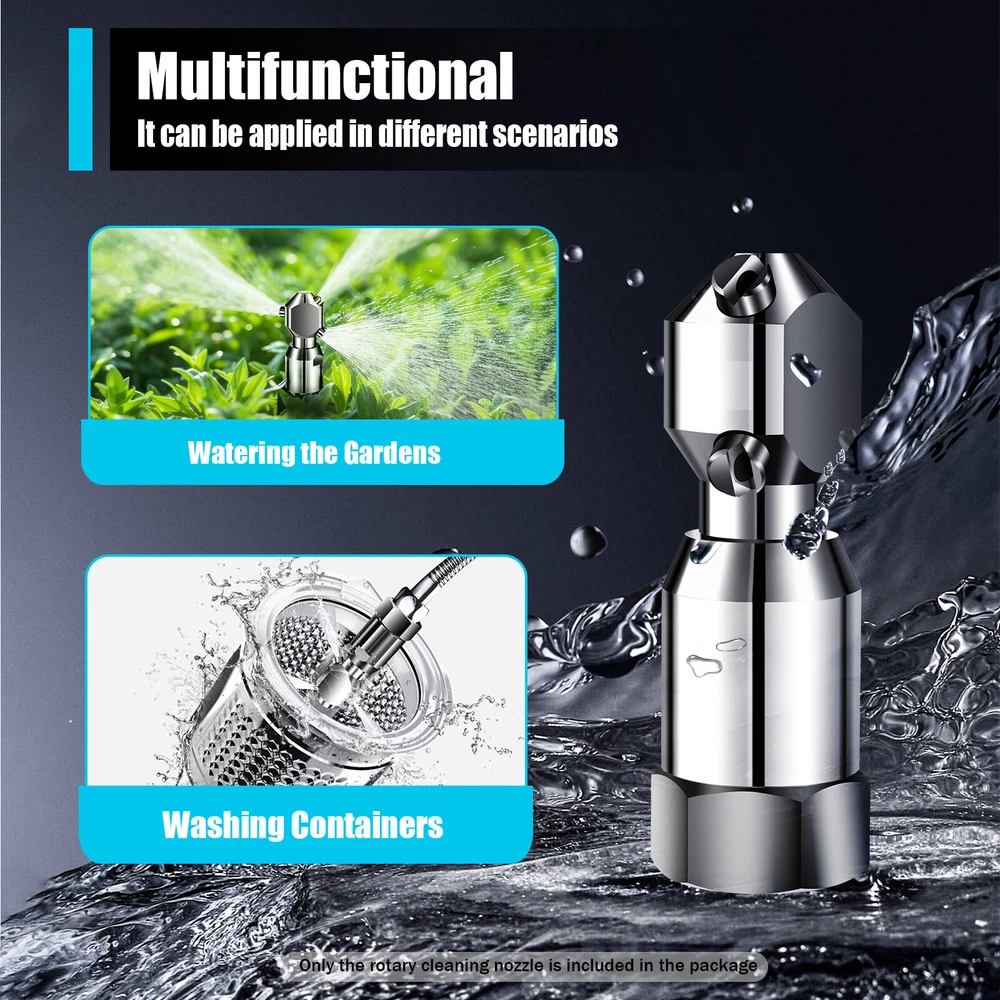 Specifications Material: 304 Stainless Steel, Precipitation Hardening Stainless Steel Color: Silver Style: Modern, Simple Shape: Cylinder Water Spraying Status: Mist Surface Treatment: Polishing Number of Items: 1PC Outer Diameter: 34.6mm/1.36inch Internal Diameter: 24.14mm/0.95inch Pitch of thread: 1.81mm/ 0.07inch Rotary Head Length: 4.7cm /1.85inch Main Body Length: 4cm/1.57inch Connection Base Length: 1.7cm/0.66inch Working Pressure: 1-7Pa Max Temperature Resistance: 180℃/356℉ Gross Weight: 0.55kg/1.21lbs Net Weight: 0.45kg/0.99lbs Product Size(D*H): 3.46*10cm/1.36*3.93inch Package Size: 13.5*8*9cm/5.31*3.14*3.54inch 360?? Rotating Tank Washing Spray Nozzle Cleaning Nozzle 3/4 Internal Thread USA Description Description Do you still look for an effective and helpful tool for cleaning to save energy and time? Our stainless steel rotary cleaning nozzle can solve this problem well. It has 304 stainless steel surface and precipitation hardening stainless steel circlip and bearing, which can be equipped with different tools. Such a simple and practical spray nozzle is a good helper in different scenes. Key Feature Durable and Sturdy: It is made of 304 stainless steel with a polishing process and has precipitation hardening stainless steel circlip and bearing, offering durability, sturdiness, hot-resistance and anti-friction for this product. High Efficiency: The rotary head can rotate 360 ° with a spray diameter of up to 2 meters, 3 powerful water outlets and a high flow rate of 50L/min under a water pressure of 7kg without any other external motor when it has strong water pressure, which can fulfill daily needs. Dual Installations: This stainless steel rotary cleaning nozzle can be installed on suitable tools horizontally or vertically, which can be applied in different scenarios. Easy to Install: This rotary cleaning nozzle does not require any tools to install, just connect it with pipes by the thread, as long as the diameter matches. Easy to Clean: Its anti-corrosion and smooth material with polishing treatment make it easy to clean. It just needs to be cleaned like any other stainless steel item or it can self-clean during use. Multifunctional: The stainless steel rotary cleaning nozzle can be used not only for washing containers but also for watering the garden. Lightweight and Convenient: The easy-to-carry rotary cleaning nozzle measures 1.36*3.93 inches and weighs 0.99 pounds, which allows you to use it anytime and anywhere. Guaranteed Customer Service: Your satisfaction is our primary goal. If you have any question about this rotary cleaning nozzle, please feel free to contact us, we will reply and provide the solution to you as soon as possible. Details Three Water Outlets: Firmly screw them on the rotary head to save your time. Each water outlet achieves a 60-degree fan spray to cover a larger area and improve work efficiency. Hexagonal Connection Base: A hexagonal nut design can prevent it from slipping out of your hands for convenient connections. Application It can be used for indoor/outdoor cleanings, and is suitable for pipeline cleanings, steel bucket cleanings, food processing tank cleanings, pharmaceutical processing tank cleanings, watering gardens, etc, as long as the diameter matches. Specifications Material: 304 Stainless Steel, Precipitation Hardening Stainless Steel Color: Silver Style: Modern, Simple Shape: Cylinder Water Spraying Status: Mist Surface Treatment: Polishing Number of Items: 1PC Outer Diameter: 34.6mm/1.36inch Internal Diameter: 24.14mm/0.95inch Pitch of thread: 1.81mm/ 0.07inch Rotary Head Length: 4.7cm /1.85inch Main Body Length: 4cm/1.57inch Connection Base Length: 1.7cm/0.66inch Working Pressure: 1-7Pa Max Temperature Resistance: 180℃/356℉ Gross Weight: 0.55kg/1.21lbs Net Weight: 0.45kg/0.99lbs Product Size(D*H): 3.46*10cm/1.36*3.93inch Package Size: 13.5*8*9cm/5.31*3.14*3.54inch Package Included 1*Rotary Cleaning Nozzle Notes Please measure your tools' diameter to check if it can be matched. Please allow the slight color difference caused by the shooting light and 1-3cm error due to manual measurement, and make sure you do not mind before you order. Payment Delivery details Terms of sales About us Contact us Payment We accept ebay payment 。 Fees such as import duties, taxes are not included in the item price or shipping costs. These charges are the buyer's responsibility. Delivery details Shipping: 2-9 working days to: USA Terms of sales We maintain high standards of excellence and strive for hundred percent customer satisfaction. Feedback is very important to us. We hope that you contact us immediately before you give neutral or negative feedback, so that we can address your concerns. It is impossible to address issues if we do not know about them! About us Your satis faction is our ultimate goal. We work hard to earn your trust and future business. Our certified technicians have tested each item before shipping. The unit comes with 1 year limited warranty on all manufacturing defects. a) If you receive a defective item, you may return it or ask for a discount. Please contact us within 14 days after you receive the package. b) What you returned must be intact and in its original packaging as re? u. Customer is responsible for shipping costs of the returned item. c) We will cover the cost of shipping back t with the shipping rate indicated in the registration page. We will send you a new unit or refund the full payment you paid. Thank you. Contact us Business Hour Business Hour: Monday To Friday: 8:30 AM to 5:00 PM (Beijing China time) Due to time zones, our reply to your questions may not be immediately. But within above working time, we will reply your email within 24 hours. If it's non-workdays, please kindly be patient and wait till Monday. Please contact us with ebay message. Please feel free to contact us if you have any questions. Monday To Friday: 8:30 AM to 5:00 PM (Beijing China time) Due to time zones, our reply to your qu