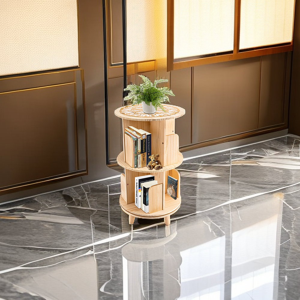 This rotating bookshelf is a game-changer for small spaces! The 360-degree spin makes it super easy to access books or decor from any angle, and the sturdy pine wood holds up to 50kg per shelf—plenty for heavy books. Assembly was quick, and the natural wood finish adds warmth to my room. Perfect for organizing without taking up much floor space. Love how it displays my favorite reads while keeping everything within reach!