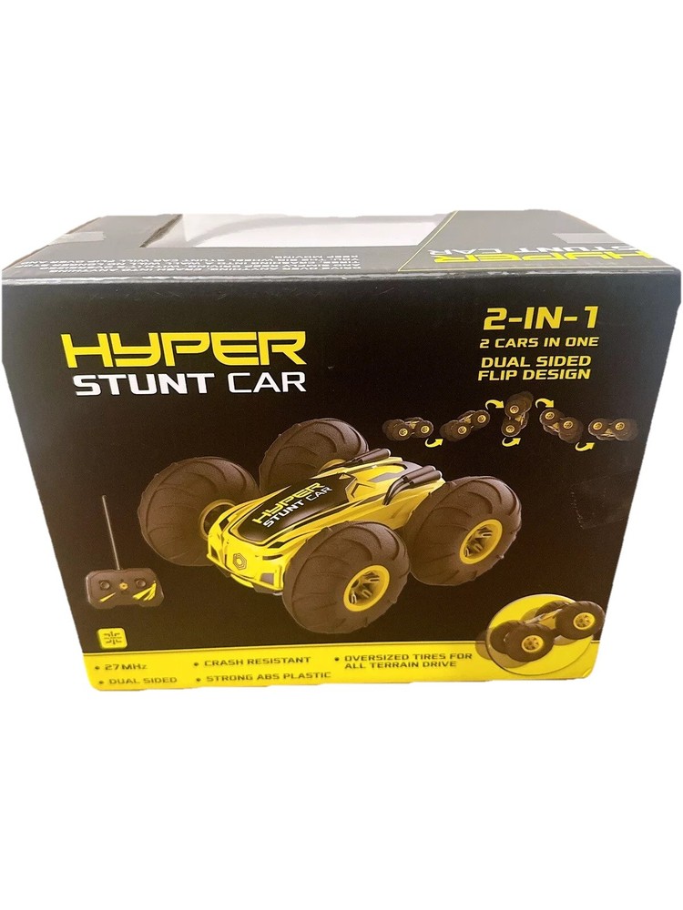 The Braha Hyper Stunt Car is a 2-in-1 buggy designed for exciting stunts with its ability to perform 360-degree spins. It features oversized tires for all-terrain driving, making it suitable for both off-road and on-road surfaces. This electric-powered car is recommended for children aged 3-11 years old and offers a 4WD drive system for enhanced control and performance. The vibrant yellow color and modern design of the Hyper Stunt Car add to its appeal, providing a thrilling RC experience for young enthusiasts.