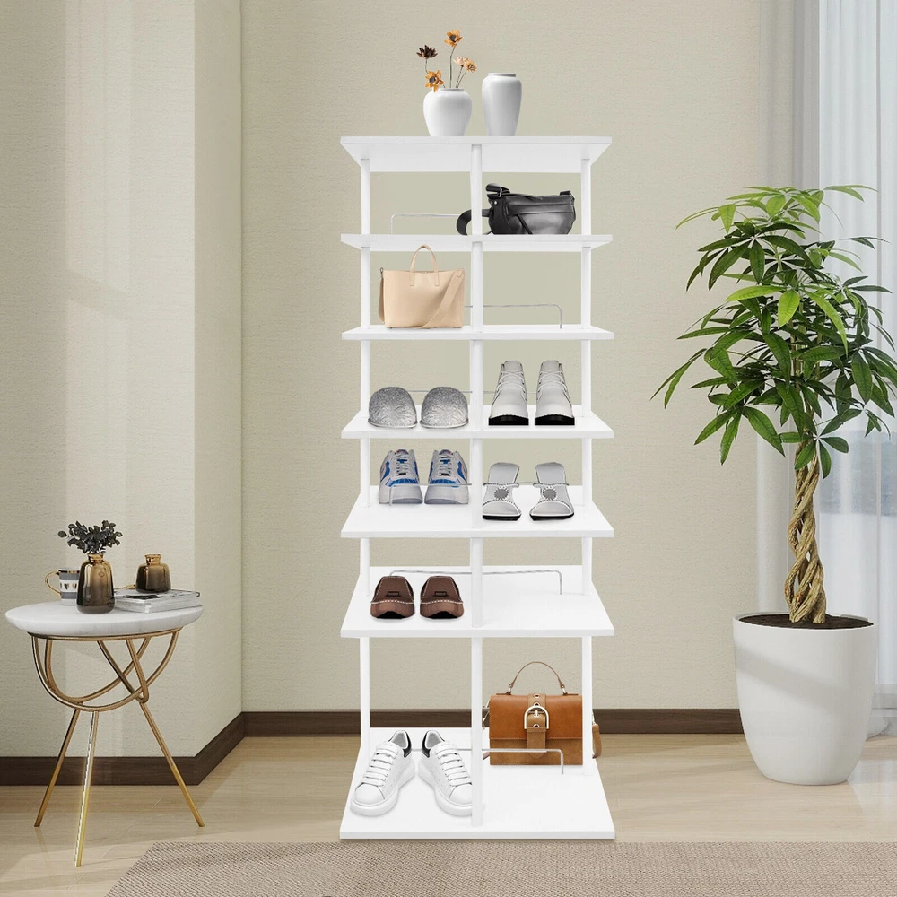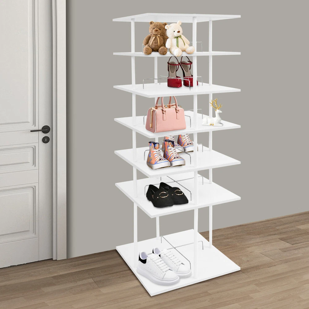 6-Tier Shoe Storage Rack 360° Rotating Shoes Shelf Organizer Shoe Display Rack Welcom to yanqiuwangluo66 A good shoe rack is not only a thoughtful steward of your shoes, but also an artistic accent to your home life. Our shoe storage rack is designed to hold shoes, hats or other items in an organized manner. It is made of high-class paintless board and metal with spray coating and baking paint processes, which is not only beautiful but also can be used for a long time. It can help you organize various kinds of shoes and solve storage problems in small homes. Key Features Build to Last: It is made of high-class paintless board and metal with spray coating and baking paint processes, which makes it wear-resistant, environmentally friendly, and not easy to deform, so you can use it for years and years. Large Capacity: The 6-tier design, each tier can accommodate 4 pairs of regular shoes(for reference), makes this product spacious enough for a family's shoe storage needs. You can also place small potted plants, handbags, umbrellas, etc.(not included) on the top tier. Strong Load-bearing Capacity: The square base and the solid connection between the parts allow this product to hold up to 42.99 lbs, so you can use it to store shoes or bags (not included) with confidence. Display Assistant: With it, you can neatly arrange different types of shoes. The 8.26-inch and 17.32-inch tier spacing accommodates different heights of shoes such as trainers and tall boots. In addition, the bottom of this shoe rack can be rotated 360° for easy selection, access, and storage of shoes or other items. Thoughtful Design: The open design allows you to see your shoes at a glance for easy access while still allowing for effective ventilation. Elegant Appearance: The simple white color finish creates a touch of elegance and casualness. It blends well with a variety of interior styles, bringing functionality and aesthetics to your space. Space Saving: It utilizes vertical space wisely and has a small footprint(22.44*22.44 inches), which won't make the room congested. Simple Cleaning: Thanks to its smooth surface and simple structure, you can easily clean it with a soft rag (not included). Ideal Gift : This quality and practical product is a nice housewarming gift for your family and friends. Buy with Confidence: We stand behind all our guests and look forward to assisting you with your purchase. It is our pleasure to answer your confusion and questions. The end of the story between us is not "we sell and you buy". Details Stable Base: The square base measuring 22.44*22.44 inches and with non-slip feet can effectively stabilize the product and prevent it from shaking. Center Crossbars: They can be good for dividing up placed items and making them neater. Smooth Edges: The rounded and smooth edges not only add to the aesthetics of the product but also improve the safety of use. Application It can be used in homes, stores, clothing stores, hotels, gift stores, or factory warehouses to hold various styles of shoes, hats, handbags, and so on. Specifications Color: White Material: Paintless Board, Metal Process: Spray Coating, Baking Paint Style: Modern Shape: Rectangular Assembly Required: Yes Mount Type: Floor Mount Feature: 360° Rotatable Product Care Instructions: Wipe with a Soft Cloth Number of Tiers: 6 Number of Shoes Applicable Each Tier: 4 Pairs(For Reference) Total Load-bearing Capacity: About 19.5kg/42.99lbs Gross Weight: 19kg/41.89lbs Net Weight: 18.05kg/39.79lbs Tier Spacing: 21cm/8.26in, 44cm/17.32in Product Size: 57*57*155cm/22.44*22.44*61.02in Package Size: 60*60*24cm/23.62*23.62*9.45in Package Included 1* Shoe Storage Rack All Accessories for Assembly Notes Please confirm the product size before purchasing. Please note that this product does not include display items such as shoes. Please note that the number of shoes that can be stored will vary depending on the size and height of the shoes. Please allow the slight color difference caused by the shooting light and 1-3cm error due to manual measurement, and make sure you do not mind before you order. Payment Delivery details Terms of sales About us Contact us Payment We accept ebay payment 。 Fees such as import duties, taxes are not included in the item price or shipping costs. These charges are the buyer's responsibility. Delivery details Shipping: 2-9 working days to: USA Terms of sales We maintain high standards of excellence and strive for hundred percent customer satisfaction. Feedback is very important to us. We hope that you contact us immediately before you give neutral or negative feedback, so that we can address your concerns. It is impossible to address issues if we do not know about them! About us Your satis faction is our ultimate goal. We work hard to earn your trust and future business. Our certified technicians have tested each item before shipping. The unit comes with 1 year limited warranty on all manufacturing defects. a) If you receive a defective item, you may return it or ask for a discount. Please contact us within 14 days after you receive the package. b) What you returned must be intact and in its original packaging as re? u. Customer is responsible for shipping costs of the returned item. c) We will cover the cost of shipping back t with the shipping rate indicated in the registration page. We will send you a new unit or refund the full payment you paid. Thank you. Contact us Business Hour Business Hour: Monday To Friday: 8:30 AM to 5:00 PM (Beijing China time) Due to time zones, our reply to your questions may not be immediately. But within above working time, we will reply your email within 24 hours. If it's non-workdays, please kindly be patient and wait till Monday. Please contact us with ebay message. Please feel free to contact us if you have any questions. Monday To Friday: 8:30 AM to 5:00 PM (Beijing China time) Due to time zones, our reply to your questions may not be immediately. But within above working time, we wi