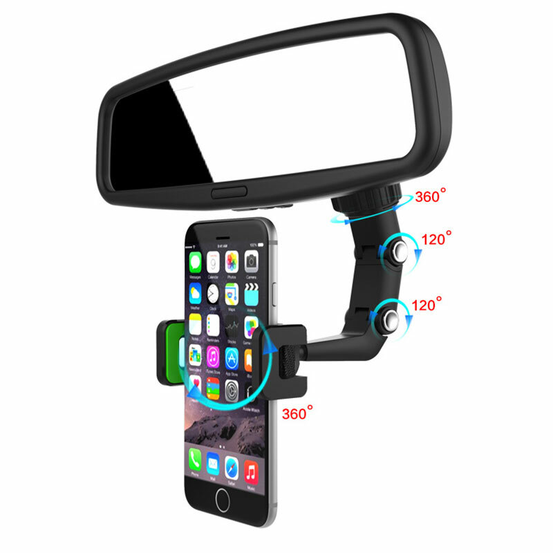 Features: Car phone holder can rotate 360° to meet the needs of different sight lines; Meanwhile, it also supports horizontal and vertical screen switching, the navigation angle can be adjusted at will, which is convenient for you to plan your route and drive better. The car phone mount adopts concealed design, when you using, just pull the holder out of the rearview mirror; If not needed, you can hide the holder behind the rearview mirror with a light push, does not disturbing you sight and not affect your driving safety. This bracket allows the mobile phone or GPS to be mounted on the rearview mirror, convenient for you to touch screen with one hand while driving, and you can adjust the navigation route only by one-hand, to ensure driving safety and reassure your family. Specifications: Size:approx.2.6x5.5x14.6cm/1.0x2.2x5.7inch Material: ABS Color:green/Gray Include: 1*holder