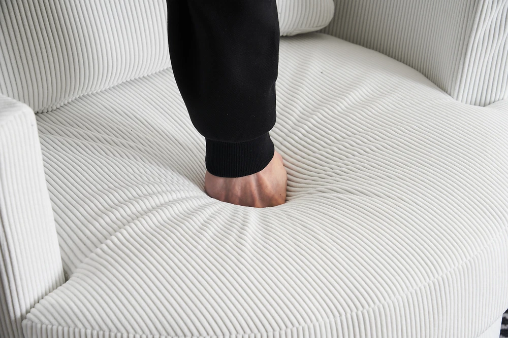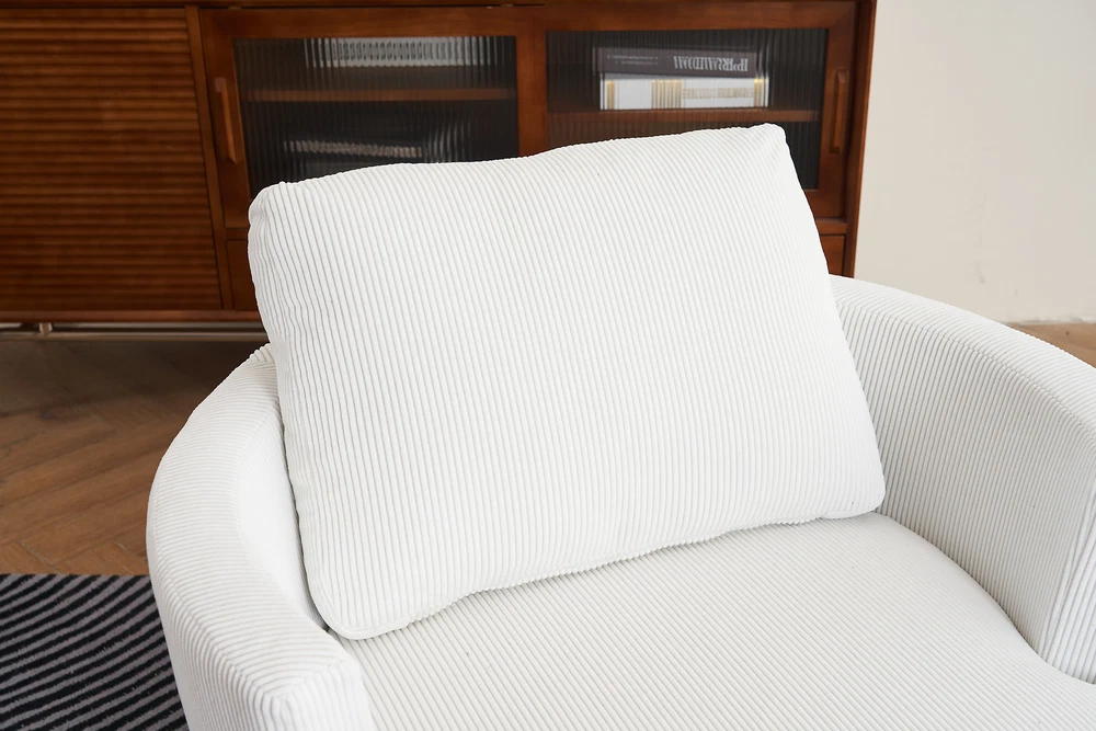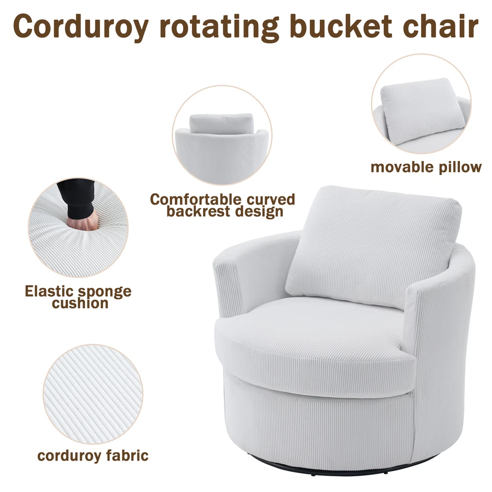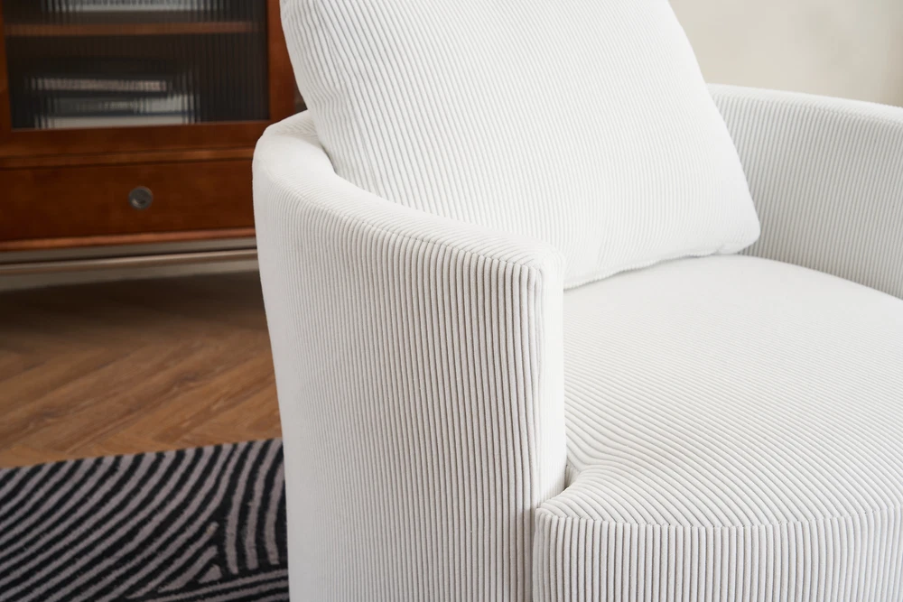 This swivel barrel chair is a fantastic addition to any living space! The 360-degree rotation is smooth and silent, making it perfect for relaxing or entertaining. The reversible, high-density foam cushion is incredibly comfortable, and the removable cover makes cleaning a breeze. The sturdy metal base and supportive arms add both durability and convenience. The soft polyester fabric feels premium and holds up well over time. Compact yet spacious enough to curl up in, this chair offers both style and comfort at an unbeatable value. Highly recommend!