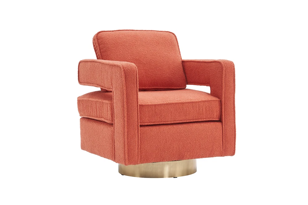 This swivel barrel chair is a fantastic addition to any living space! The 360-degree rotation is smooth, and the reversible cushion adds versatility. The faux fabric feels soft, while the high-density foam and pocket springs provide excellent support. The sturdy metal base and wooden frame ensure durability, and the sleek track arms offer perfect armrest comfort. Easy to clean with removable covers, it’s both stylish and practical—great for relaxing or entertaining!