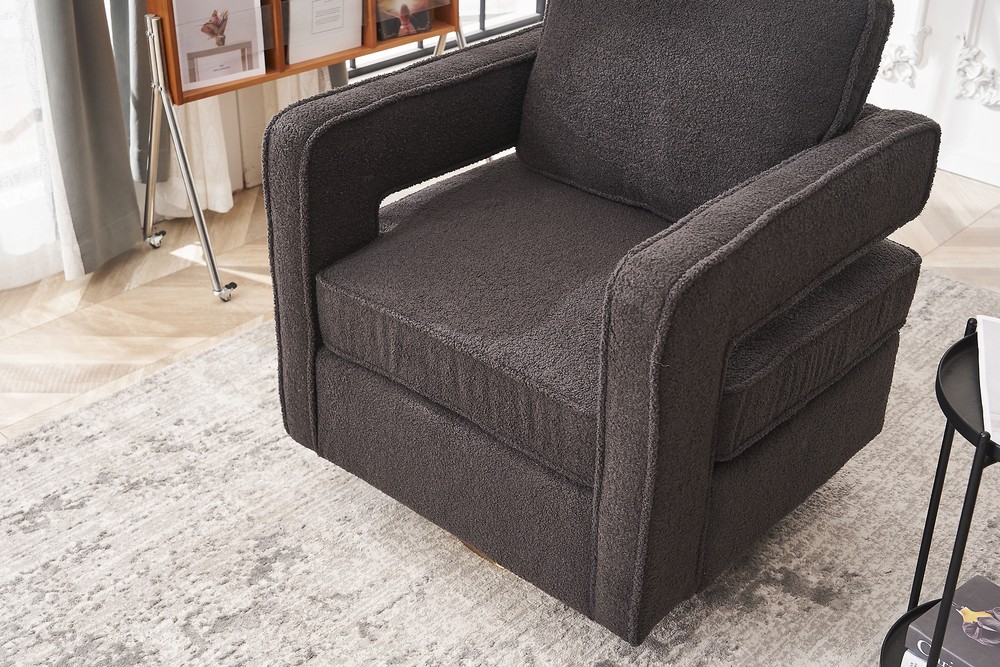 This swivel barrel chair is a stylish and comfortable addition to any living space! The 360-degree swivel base is smooth and sturdy, while the reversible cushion and removable cover make it practical. The high-density foam and pocket spring support provide excellent comfort, and the faux fabric feels soft yet durable. The sleek design with track arms offers perfect arm placement, and the solid wooden frame ensures long-lasting use. Great for relaxing or adding a modern touch to your decor!