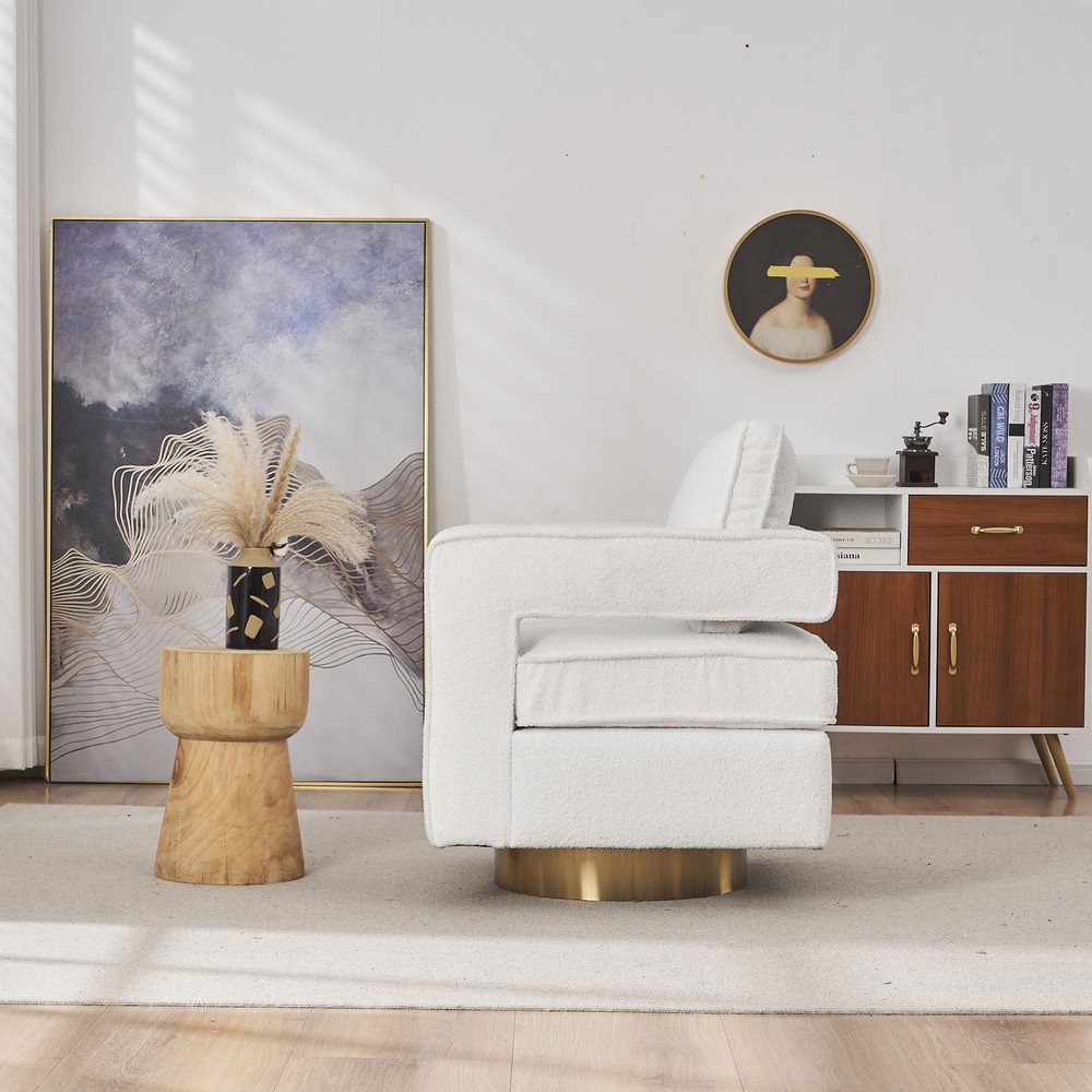 This swivel chair is a perfect blend of style and comfort! The 360-degree swivel is smooth, and the reversible cushion adds versatility. The faux fabric feels soft, while the high-density foam and spring support keep it cozy yet supportive. Sturdy metal base and solid wood frame ensure durability, and the sleek design fits any space. Love the hidden swivel—so sleek and modern. Perfect for relaxing or adding a chic touch to your living room!