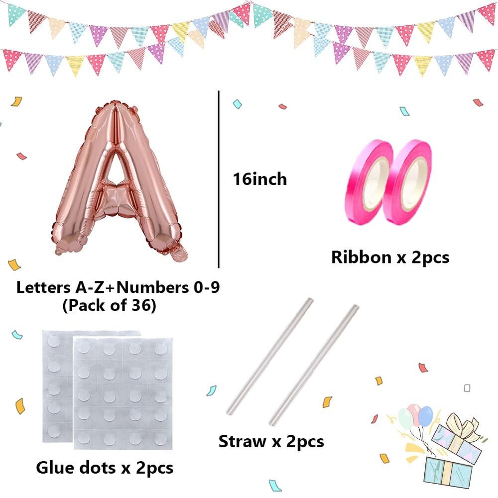 36pcs Rose Gold Custom Letter Balloons Kit 16Inch, DIY Phrase Banner for Wedding Baby Shower Birthday Party Supplies, includes A-Z & 0-9 Letters and Numbers, Straw, Ribbon, Dot Glue (Rose Gold) The package including: Rose-gold 16'' A-Z 26 letter balloons whole set, Rose-gold 16'' 0-9 10 number balloons whole set, 2Pcs straw, 2Pcs glue dot(20dots), 2Pcs ribbon, 1pcs balloon usage record sticker. Scenes to be used: Suitable for wedding party, birthday, hallowee, christmas, festival decoration etc. You can spell the words and numbers you want with letter balloons and number balloons Easy to use: the package comes with 2pcs straw, glue dot and ribbon, and comes with a balloon usage record sticker, you can record of which balloons have been used and use the rest for the next party About materils: The balloon is crafted of aluminum film. When inflating the balloon with a straw, carefully insert the straw into the inflation port, press the self-sealing tail after finishing blowing up. Please don't use helium as 16'' balloon will not float using helium Kind tips: There are some letter and number balloons that look similar before they are inflated The package including: Rose-gold 16'' A-Z 26 letter balloons whole set, Rose-gold 16'' 0-9 10 number balloons whole set, 2Pcs straw, 2Pcs glue dot(20dots), 2Pcs ribbon, 1pcs balloon usage record sticker. Scenes to be used: Suitable for wedding party, birthday, hallowee, christmas, festival decoration etc. You can spell the words and numbers you want with letter balloons and number balloons Easy to use: the package comes with 2pcs straw, glue dot and ribbon, and comes with a balloon usage record sticker, you can record of which balloons have been used and use the rest for the next party About materils: The balloon is crafted of aluminum film. When inflating the balloon with a straw, carefully insert the straw into the inflation port, press the self-sealing tail after finishing blowing up. Please don't use helium as 16'' balloon will not float using helium Kind tips: There are some letter and number balloons that look similar before they are inflated Shipping from the USA All of our products are shipped from the USA, ensuring quick delivery to your destination. Payment We offer the following payment methods: PayPal, credit card, bank transfer, and eBay's secure payment system. Free Shipping & Free Returns Shipping within the USA is FREE. Additionally, any return is absolutely free for you. Risk-Free Purchase You have the option to return an item within 30 days without any justification. We cover the return shipping costs! Fast Shipping We ship immediately upon receipt of payment. Generally, the package is delivered within 2-3 days in the USA. If it takes longer, we will contact you. Quality and Costs Made in Europe, USA, China No customs fees or additional charges Total satisfaction guarantee Invoice with declared VAT available upon request in .pdf format Feedback Your feedback is very important to us. After you pay for your purchase, you will automatically receive positive feedback from us.