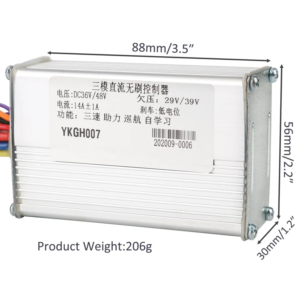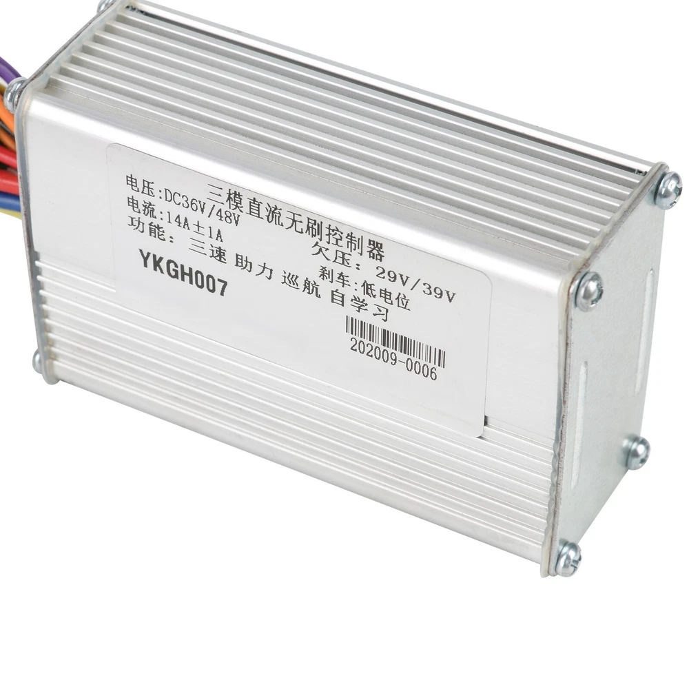 Fitment: F or Electric Scooter , ATV Quad , Bicycle , Tricycle , E-bike , Go Kart , Golf Cart , Drift Trike . Product Specification: Product Type:Brushless Controller Condition:100% Brand New M ain Color: Silver Rated Voltage: DC 36V/48V Current Limit: 14A ± 1A Rated Power:350W Packing List: 1 * DC 36V/48V 350W Brushless Controller Note: Please check pictures and the size specifications for compatibility before purchasing,we will not be responsible for the shipping cost if you didn't check it and it doesn't fit. Model is just for reference,not definitely correct. Any question,welcome to contact us,thanks!