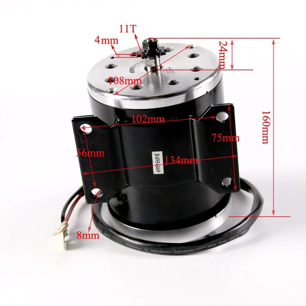 Electric Bike Scooter 36V800W Motor Engine Unite Motor Brush Motor Model MY1020 Electric EVO scooter parts Fits : trycicle , electric scooter , extreme scooter and similar bikes 36V800W Brushed motor Unite Brand Motor We also have 36V500W for sale motor sprocket 11 teeth Diameter :10.5cm Bracket foot width:12cm Motor length :13.5cm Fit:25H Chain Speed reduction motor /Permanent Magnet Motor - Low speed with large torque Rating power ?800W 36V Rating speed rate/rpm 2800rpm Rating torque /N.m : 2.8 N.m Efficiency : ? 78 Use : tricycle , bicycle , E-scooter, EVO scooter ,Extreme scooter Speed Controller: Works on 36V, 800W scooters and electric bikes Type: brush speed controller Voltage: 36V Wattage: 800W Casing material: aluminium Colour: silver Dimensions: 122 x 97 x 50mm Plug : 1.Red & Black (large cable) : Battery connections 2.Yellow & Blue : Motor connections 3.Red & Blue : Key Switch(power lock) (If there is no power door locks,red connection to blue) 4.Yellow & black : brake 5.Red & Yellow: Brake light 6.Red&Black(small cable) : indicator light 7.Red, Black & Blue: Speed Regulator 1-4 V(Throttle ) (Red:+5v,Black: - ,Blue :Signal Wire) 8.Red & Black (small cable): Charger inkfrog terapeak