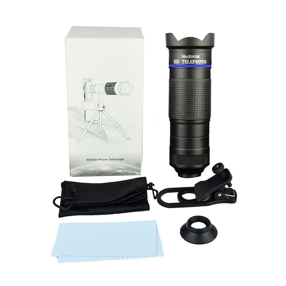 Product Description Features: The telescope can be used as a monocular. Fit most kinds of mobile phones, include flip phones and bar phones, Phone has back camera, can be connected to the telescope through the clip. Mobile phone's quality of imaging can be improved evidently. Applicable to watch the game, concerts, tourism, observe animal lovers, news reporter long-distance shooting etc. Private detective taking pictures forensics, geological exploration, forestry management, railway port scheduling and etc. Specifications: Name: 36X Phone Camera Telephoto Lens Lens size: 145mm Magnification: 36 times Appearance material: Alloy Exit pupil diameter: 2.4mm Exit pupil distance: 7.7m Field of view angle: 8.8° Eyepiece: Ed lens Prism: BAK4 Objective lens coating: Full band multilayer coating Notice: Please use it care, because lens are adjusted accurately, if it drops or hit, the field of vision maybe not matched and picture will deflect ,nbsp Please don't drop into water. If it drops into water, please repair it quickly. Please don't look at the sun absolutely, your eyes may be ache and blind sometimes. Package includes: 1 x Telephoto Lens 1 x Clip 1 x Clean cloth Shipping Returns Contact Us Payment 1. Items sent from US warehouse. 2. Receiving time = Processing time + Shipping time. 3. Pro cessing Time: Around 1-2 business Days. 4. Shipping Time: 3-5 business day. it may have a little delay during some holiday (such as Christmas), any problem, please feel free to contact. 1. 30 days warranty from the purchased date. Please contact us via email before returning the defective item. 2. Our warranty does not extended to any product that are physically damaged or that are not under normal operating conditions as result of misuse or improper installation on the buyer/user's part. 3. Return items should include the original packaging and all accessories. buyers MUST contact us for the returning address. 4. In all cases, buyers pay shipping fees at their own cost to return products for exchange or refund. We will be responsible for the postage of replacements. Refund will be made upon receipt of the returned item. If you have any question, please e-mail us immediately, we will reply you as quickly as possible. We care about our valued customers, and will always try to help you. We accept all verified payment from eBay. Shipping 1. Items sent from US warehouse. 2. Receiving time = Processing time + Shipping time. 3. Pro cessing Time: Around 1-2 business Days. 4. Shipping Time: 3-5 business day. it may have a little delay during some holiday (such as Christmas), any problem, please feel free to contact. Returns 1. 30 days warranty from the purchased date. Please contact us via email before returning the defective item. 2. Our warranty does not extended to any product that are physically damaged or that are not under normal operating conditions as result of misuse or improper installation on the buyer/user's part. 3. Return items should include the original packaging and all accessories. buyers MUST contact us for the returning address. 4. In all cases, buyers pay shipping fees at their own cost to return products for exchange or refund. We will be responsible for the postage of replacements. Refund will be made upon receipt of the returned item. Contact Us If you have any question, please e-mail us immediately, we will reply you as quickly as possible. We care about our valued customers, and will always try to help you. Payment We accept all verified payment from eBay. You may also like 2Pcs Dryer Roller Wheel Drum Support Kit Replacement Part For Maytag Whirlpool 18.91 USD 3.99 USD 8PCS Hair Clipper Cutting Guide Combs With Metal Clip Replacement Tools For WAHL 13.38 USD 3.99 USD Leather Cushion Face Cover Eye Foam Mask Pad Anti-Sweat For Oculus Quest 2 VR 15.94 USD 18 Grids Watch Tiny Parts Storage Box Plastic Repair Acc Container + Dust Cover 11.75 USD Metal Bead Eyeglass Chain Glasses Strap Holder Lanyard Sunglasses Non-slip 8.93 USD Soft Rubber Dust Blower Air Pump Cleaner Watch & Camera PCB Repair Cleaning Tool 4.61 USD 3.99 USD powered by