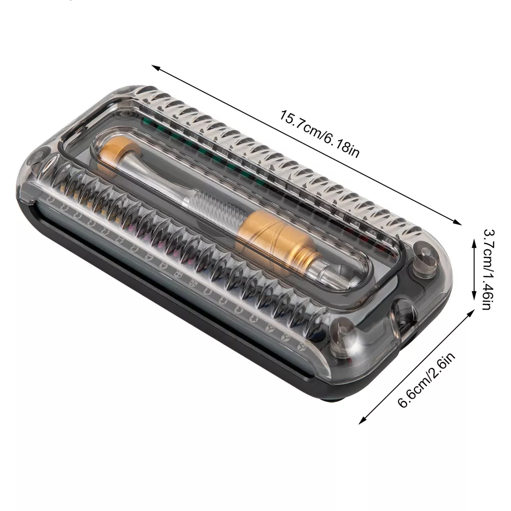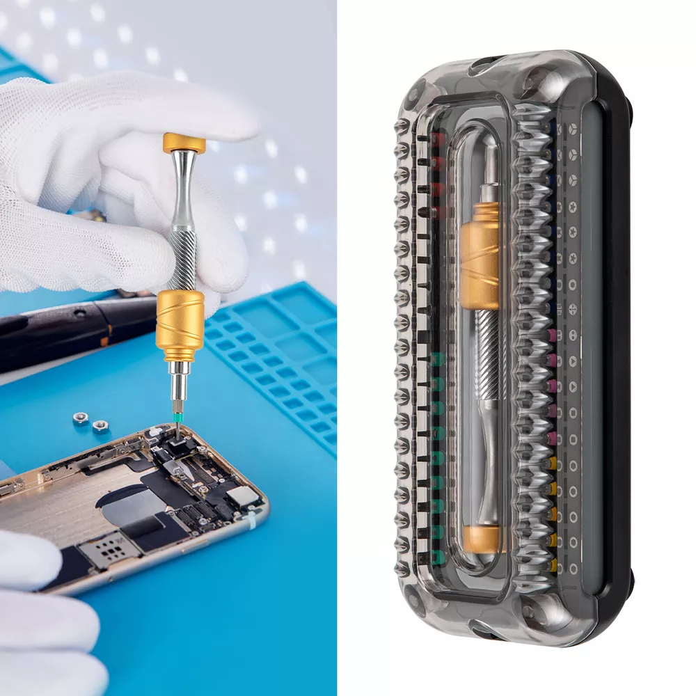 37X Precision Screwdriver Kit Electronics Repair Tool Kit w/ Magnetic Driver Bit 37PCS Precision Screwdriver Kit, with Low-Gravity Design Magnetic Driver Handle and Durable S2 Steel Bits, for Electronics Repair Model: PH000/PH00/PH0/PH1/SL1.5/SL2.0/SL2.5/SL3.0/SL4.0/T2/T3/T4/T5H/T6H/T8H/T10H/T15H/T20H/H0.9/H1.3/H1.5/H2.0/H2.5/Y0.6/Y2.0/Y2.5 /△2.0/△2. 3/U2.6/S0/S1/★0.8/★1.2/★1.5/Through Pin 0.8/Middle Plate 2. 5 Description In the modern manufacturing industry, the precision screwdriver kit is a very important tool. They are widely used in various fields, such as locks, electronic equipment, mechanical engineering, and other industries. The kit consists of several bits of different sizes and shapes to meet the removal and installation needs of different types of screws. The precision screwdriver kit is irreplaceable for applications where fast, accurate, and efficient removal and installation operations are required. Key Features High-quality Material: This product is made of high-quality S2 steel, with high hardness, high abrasion resistance , anti-corrosion , rust-proof performance, and long service life. More Efficient: The screwdriver head features a magnetic design that simplifies the process of removing and installing screws. This allows for quick and easy switching of the correct head for the operation. Multiple Sizes: 36 sizes and types of bits are available to meet the removal and assembly needs of different sizes and types of screws, making it suitable for a variety of small devices and electronics and saving your costs due to eliminating extra purchases. Fine Packaging: The compartmentalized storage of the screwdriver set effectively prevents the heads from colliding with each other. Additionally, the storage box also allows for easy transport and accessibility. User-friendly Design: The recess magnetic adsorption design of the storage box can keep the kit from falling off even if they are upside down. Additionally, the storage box can also be used as a stand, providing added convenience. Easy to Find: The unique color-coded system on the head and the shape markings on the box allow you to quickly find the matching model, thus saving you time in your work. Details Low Gravity Device: The low gravity device gives it a flywheel effect, showing amazing stability and power. Semi-transparent Shell: The semi-transparent shell not only serves as a dust-proof case but also allows you to see the distribution position of the internal cutter head at a glance. Application This product is suitable for home or office appliance repair. It can be used to disassemble cell phones, glasses, watches, laptops, drones, keyboards and other electronics. Specification Material: S2 Steel Assembly Required: No Model:PH000/PH00/PH0/PH1/SL1.5/SL2.0/SL2.5/SL3.0/SL4.0/T2/T3/T4/T5H/T6H/T8H/T10H/T15H/T20H/H0.9/H1.3/H1.5/H2.0/H2.5/Y0.6/Y2.0/Y2.5 /△2.0/△2. 3/U2.6/S0/S1/★0.8/★1.2/★1.5/Through Pin 0.8/Middle Plate 2. 5 Gross Weight: 0.33kg/ 0.73 lbs Product Size: 15.7*6.6*3.7 cm/ 6.18*2.6*1.46 in Screwdriver Size(W*H):2*11cm/0.79*4.33in Package Included 1 * 37PCS Precision Screwdriver Kit Notes Different types and sizes of screws need to be matched with different screwdriver heads, otherwise, it will lead to damage to the screw or screwdriver head. You need to control the amount of force when using the screwdriver, too much force will easily damage the screw and screw hole, and too little force may cause the screw to slide. Please clean and lubricate the screwdriver kit regularly to keep it in good working condition. Description Payment Delivery details Terms of sales About us Contact us Payment We accept ebay payment 。 Fees such as import duties, taxes are not included in the item price or shipping costs. These charges are the buyer's responsibility. Delivery details Shipping: 2-9 working days to: USA Terms of sales We maintain high standards of excellence and strive for hundred percent customer satisfaction. Feedback is very important to us. We hope that you contact us immediately before you give neutral or negative feedback, so that we can address your concerns. It is impossible to address issues if we do not know about them! About us Your satis faction is our ultimate goal. We work hard to earn your trust and future business. Our certified technicians have tested each item before shipping. The unit comes with 1 year limited warranty on all manufacturing defects. a) If you receive a defective item, you may return it or ask for a discount. Please contact us within 14 days after you receive the package. b) What you returned must be intact and in its original packaging as re? u. Customer is responsible for shipping costs of the returned item. c) We will cover the cost of shipping back t with the shipping rate indicated in the registration page. We will send you a new unit or refund the full payment you paid. Thank you. Contact us Business Hour Business Hour: Monday To Friday: 8:30 AM to 5:00 PM (Beijing China time) Due to time zones, our reply to your questions may not be immediately. But within above working time, we will reply your email within 24 hours. If it's non-workdays, please kindly be patient and wait till Monday. Please contact us with ebay message. Please feel free to contact us if you have any questions. Monday To Friday: 8:30 AM to 5:00 PM (Beijing China time) Due to time zones, our reply to your questions may not be immediately. But within above working time, we will reply your email within 24 hours. If it's non-workdays, please kindly be patient and wait till Monday. Please contact us with ebay message. Please feel free to contact us if you have any questions. Features ★Fast shipping,Long service life★ Type Driver & Bit Set Brand Unbranded Drive Type Mixed Set Number of Pieces 37 Material S2 Steel MPN Does Not Apply Star Size T2 System of Measurement Metric/Standard Model 37PCS Precision Screwdriver Kit Color Black Screwdriver Size (W*H) 2*11cm/0.79*4.33in Product Size 15.