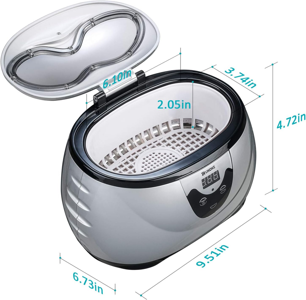 3800S Professional Ultrasonic Jewelry Cleaner Machine, 0.6L Portable Household Timer Device for Eyeglasses, Dentures, Watches, Rings | Silver, Fast Deep Cleaning for Small Accessories MULTI-PURPOSE ULTRASONIC CLEANER – Perfect for cleaning jewelry, eyeglasses, dentures, watches, coins, lab instruments, and more. Ideal for optical shops, jewelry stores, repair centers, dental clinics, laboratories, and home use. Cleans in minutes using only tap water! POWERFUL & SAFE CLEANING – Generates 42,000 Hz of ultrasonic sound waves for a deep yet gentle clean, removing dirt and grime without damaging valuables. Refreshes items to look brand new!POWERFUL & SAFE CLEANING – Generates 42,000 Hz of ultrasonic sound waves for a deep yet gentle clean, removing dirt and grime without damaging valuables. Refreshes items to look brand new! ADVANCED DEGASSING FUNCTION – The exclusive Degas Mode removes trapped air bubbles from water, improving ultrasonic cleaning efficiency while preventing oxidation and chemical reactions that traditional cleaners can’t avoid. TEASY TO USE WITH TOUCH CONTROLS – Features a modern digital touch control panel for precise cleaning. Choose from 5 preset cycles (90, 180, 280, 380, & 480 seconds) based on your cleaning needs. Stable & durable compared to traditional push buttons. LARGE 600ML (20 OZ) CAPACITY – The stainless steel tank (5.4” L x 3.6” W x 2.1” H) accommodates a variety of items, ensuring a professional-grade clean at home. RECOMMENDED CLEANING TIP – Add a few drops of liquid dish soap for even better results! Safe for metals, glass, ceramics, and more. Not suitable for pearls, coral, emeralds, jade, or microfiber items. 1-YEAR REPLACEMENT WARRANTY – Buy with confidence! Backed by a 1-year free replacement policy for any quality issues. 24/7 CUSTOMER SUPPORT – Have questions? Our dedicated customer service team is ready to assist within 24 hours! Product Description The video showcases the product in use. The video guides you through product setup. The video compares multiple products. The video shows the product being unpacked. hero-video Merchant Video Item model number 3800S Item Weight 2 Pounds Color Silver Screen Size 11.5 Inches Material Stainless Steel, Plastic Country of Origin China Number of settings 5 Global Trade Identification Number 00856121007080 Design Ultrasonic Cleaner Department womens Manufacturer Technology Is Discontinued By Manufacturer No Product Dimensions 6.73"D x 9.51"W x 4.72"H Size 0.6 L 9.51 "h x 6.73 "h x 4.72 "h. Weight: 2.0 lb Shipping from the USA All of our products are shipped from the USA, ensuring quick delivery to your destination. Payment We offer the following payment methods: PayPal, credit card, bank transfer, and eBay's secure payment system. Free Shipping & Free Returns Shipping within the USA is FREE. Additionally, any return is absolutely free for you. Risk-Free Purchase You have the option to return an item within 30 days without any justification. We cover the return shipping costs! Fast Shipping We ship immediately upon receipt of payment. Generally, the package is delivered within 2-3 days in the USA. If it takes longer, we will contact you. Quality and Costs Made in Europe, USA, China No customs fees or additional charges Total satisfaction guarantee Invoice with declared VAT available upon request in .pdf format Feedback Your feedback is very important to us. After you pay for your purchase, you will automatically receive positive feedback from us.