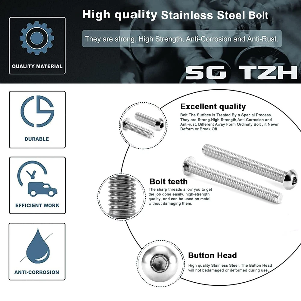 RUGGED AND DURABLE - Button Head Socket Cap Bolts Screws made of high-quality 18-8(304)Stainless Steel,which has higher corrosion resistance and anti-rust effect than ordinary bolt, longer service life, not easy to damage, more solid. Product Size - Thread Diameter: 3/8"; Thread Pitch: 1/16"; Screw Length: 2-1/2". Head Diameter: 0.646". Please check specfication by picture 2 WIDE RANGE OF APPLICATIONS - Button Head Socket Cap Bolts Screws can be widely used in the home and office appliance, communication equipments, ship assembly , the mechanical industry and small repairs around shops, garages or home furniture fasteners. VALUE PACKAGING AND EASY TO USE - This Button Head Socket Cap Bolts Screws bolt package contains 20Pcs , They are ideal for use at home, in the office or at work. INTIMATE SERVICE - focus on customer satisfaction, if you have any questions or are not satisfied, you can contact us by email, we will solve all your problems as soon as possible.