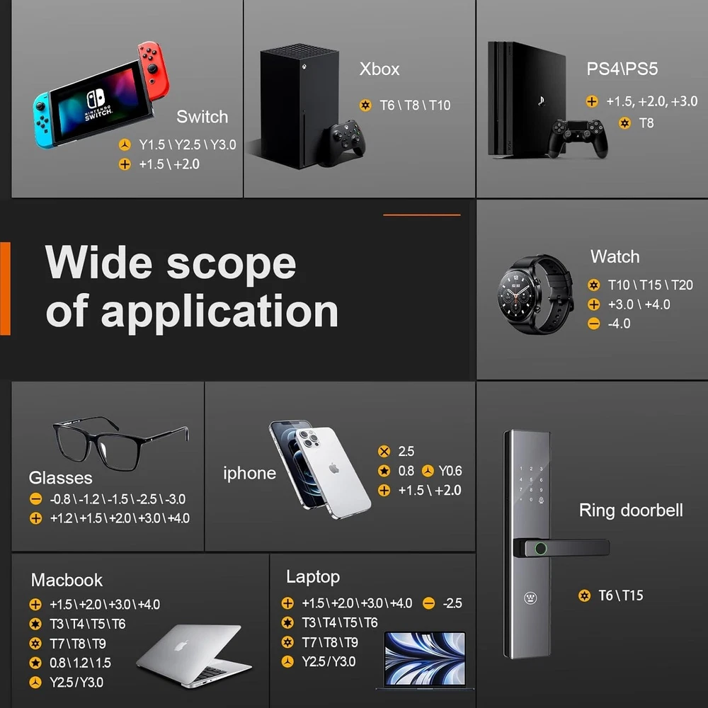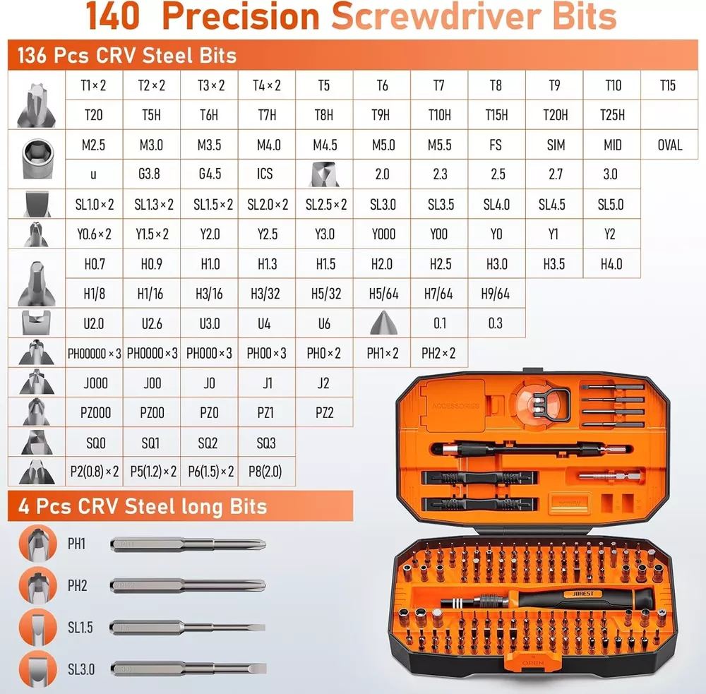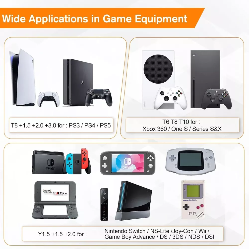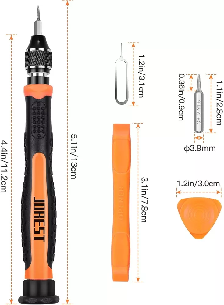 Free eBay listing template designed by dewiso.com 38Pcs Small Precision Screwdriver Set with Torx,Mini Repair Tool Kit 【Slip-resistant rotatable handle】-- All our screwdriver bits are made of high quality CR-V chrome vanadium steel. CR-V screwdriver bits do not rust easily and are not prone to be broken. The screwdriver handle is made of TPR and PP materials, with a special non-slip design, offering a sense of comfortable. The top of the handle is rotatable design which makes it more convenient to remove the screws; the handle head and the screw head has magnetic adsorption which can quickly replace the screws. 【Portable gadgets】-- The triangular spudger is more suitable for opening the screen of the mobile phone.The double-ended spudger is more suitable for opening the back cover of game devices. The long spudger can pry the internal parts of the device.The suction cup can open the screen, which is more convenient to repair the mobile phone.The SIM card thimble can be used to replace the SIM card of the mobile phone. The cleaning brush can clean the dust of the device.Tweezers can grip small parts. 【Wide scope of application】-- +1.5/2.0 P2 Y0.6 MID2.5 are used for iPhone7/8/X/XR/11/12/13. +1.2/1.5/2.0/3.0 T2/3/4/5 P2 are used for Samsung/Huawei/Xiaomi and other phones. +1.5/2.0/3.0 T3/4/5/6/9 are used for iPad/Mini/Air/Pro. +1.2/1.5/2.0/3.0/4.0 T2/3/4/5 -2.5 are used for Huawei/Honor and other tablets. P2/5/6 +1.5/2.0/3.0/4.0 T3/4/5/6/7/8/9 Y2.5/3.0 are used for Macbook/Air/Pro. +1.5/2.0/3.0 T5 are for Kindle/Kindle Fire. T6/15 are used Ring Video Doorbell/ Video Doorbell 2/Pro/Elite. 【Wide scope of application】-- T8 +1.5/2.0/3.0 are used for PS3/PS4/PS5 controllers and consoles. T6/8/10 are used for Xbox 360/Xbox One/Xbox Series controllers and consoles. Y1.5/2.5/3.0 +1.5/2.0 are used for Switch/NS-Lite/Joy-Con/Wii/Game Boy Advance. T3/8 are used for Fitbit wristband/folding knife. +1.2/1.5/2.0/3.0/4.0 T3/4/5/6/7/8/9 Y2.5/3.0 -2.5 are used for Microsoft/Acer/Dell and other laptops. +1.2/1.5/2.0/3.0/4.0 -0.8/1.2/1.5/2.5/3.0 are used for Desktop Computer/Watch/Glasses/Toy. This small precision screwdriver set is the perfect addition to any DIY enthusiast's tool collection. With a variety of sizes and styles including Torx and mini repair tools, this set has everything you need for your next project. Made with high-quality materials, these screwdrivers are durable and built to last. Whether you're a professional DIYer or a novice DIYer, this set will be a must-have for all your screwdriving needs. Don't miss out on this versatile and reliable small precision screwdriver set. Contact us We can be contacted at any time through eBay messages if you have any questions, comments or product requests. We will respond to you within 24 hours and do our best to help you out! We encourage our customers to contact us with any questions or concerns! We'd like to be sure you are completely satisfied with your purchase. Cheapsy*King