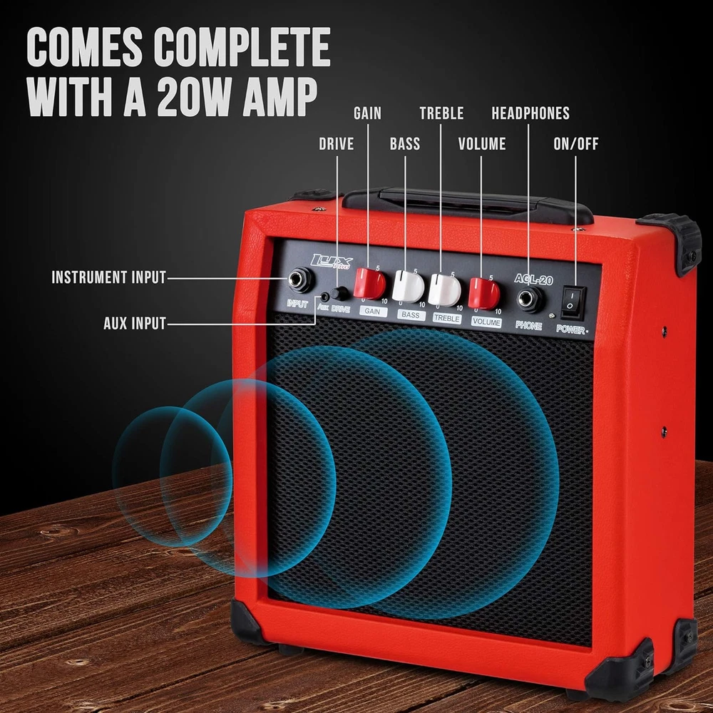 Store New Arrivals Add to Favorite View Feedback Contact 39 Inch Electric Guitar Kit Bundle with 20W Amplifier, All Accessories, Digital Clip on Tuner, Six Strings, Two Picks, Tremolo Bar, Shoulder Strap, Case Bag Starter Kit Full Size - Red Description Item model number EGBK0030R Guitar Bridge System Tremolo Speaker Amplification Type active Top Material Type Maple Wood Output Wattage 20 Watts Speaker Count 1 Color Screen No Top Material Maple Wood String Material nickle steel Product Dimensions 11.6 x 11.2 x 4.1 inches Neck Material Type Maple Number of Strings 6 Fretboard Material Maple Wood Is Discontinued By Manufacturer No Hand Orientation Right String Material Type nickle steel Back Material Phoenix wood Item Weight 1.1 ounces Body Material Wood Fretboard Material Type Maple Wood Scale Length 39 Inches Color Red Wattage 20 watts Back Material Type Phoenix wood Color Name Red Guitar Pickup Configuration S-S-S Size 39" Right Handed COMPLETE GUITAR SET | Ultimate Starter Package Includes Full Size Guitar & All the Parts & Equipment They Need to Rock Straight Out the Box | Perfect Choice for Novice & Intermediate Players 39 INCH ELECTRIC GUITAR | Perfect for beginner and intermediate players Plug In Guitar Features High-Quality Materials Including Premium Rosewood Fingerboard, Canadian Maple Neck, Volume/Tone, S-S-S pickups, Knobs & More 20 WATT AMPLIFIER WITH CABLE | Pack Includes 20W Amp with Built In Speaker, Headphone Jack & AUX Input for Playing Along to Music on Phone or MP3 Player | Integrated Controls Include Gain, Bass, Treble, Volume & Grind DIGITAL TUNER & ACCESSORIES | Battery-Operated Mini Clip-On Tuner & Instruction Book Teaches Kids to Tune Their Guitar for Best Sound Quality | Kit Also Comes with [6] Steel Strings, [2] Picks & Comfortable Shoulder Strap GIVE THE GIFT OF BEAUTIFUL MUSIC | All-in-One Set for Dummies is a Budding Musician’s Dream | From Home to School to Lessons, Learning the Guitar Has Never Been So Easy! | Perfect Present for Christmas, Birthday & Beyond Product Description 20 Watt Amplifier 39 Inch Electric Guitar Soft Storage Case Digital Tuner Strings, frets, pegs and marker dots are evenly spaced but scaled down to size, giving beginners a true-to-life feel Made by hand from premium wood, it features a sturdy Canadian maple neck and rosewood fingerboard, paired with durable strings Kids can experiment with various controls and effects on the guitar and amp, helping to expand their musicality ABOUT US We offer the best prices around on high quality products. Our E-store includes media such as books, movies, music and games while offering electronics, toys, sporting apparel, clothing, tools, general home, garden items and more. SHIPPING We are always working hard to ensure your package arrives as soon as possible. Please understand that some factors like weather, high postal traffic, and the performance of shipping companies are outside of our control. We offer free shipping to the lower 48 states and ship within 2 business days of payment, usually sooner. We do not accept P.O. Boxes. Please provide a physical address. For shipping outside of the continental USA, we only use eBay's Global Shipping Program.The item is shipped to KY and then sent to the rest of the world. International customers are responsible for all duties and taxes. Continue to check out in order to calculate costs for shipping the item to your country. Messages regarding eBay's Global Shipping Program MUST be directed at eBay EXCLUSIVELY. RETURNS We offer a 30-Day Return Policy on items which you are not completely satisfied with. You have the option for a full-refund or an exchange of the item. No returns are available on items shipped outside of the USA. PAYMENT We accept PayPal. CONTACT US This page content is yet to come Please ad us to your favorite seller and visit again later Thank You CUSTOMER SATISFACTION We try our very best to make sure every customer is completely satisfied. If there's a problem, message us! We're happy to help. WE ACCEPT Copyright © 2021 AutoDS. | All Rights Reserved