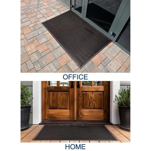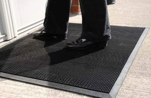 The Fingertip Mats brushing action of thousands of resilient rubber fingertips wipe off dirt and moisture from footwear. Dirt is trapped out of sight below the walking surface. Corrugated pattern on the bottom helps prevent mat movement. All four sides have beveled edging to improve safety at the facility entrance. Shake, vacuum or hose to clean. Fingertips wipe off dirt and moisture from footwear Door mat helps trap dirt below the walking surface; Shake, vacuum or hose to clean Corrugated pattern on the bottom of doormat helps prevent mat movement All four sides have beveled edging to improve safety at the facility entrance 36" Width x 72" Length x 5/8" Thickness