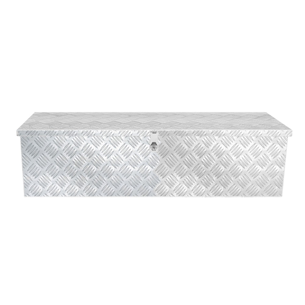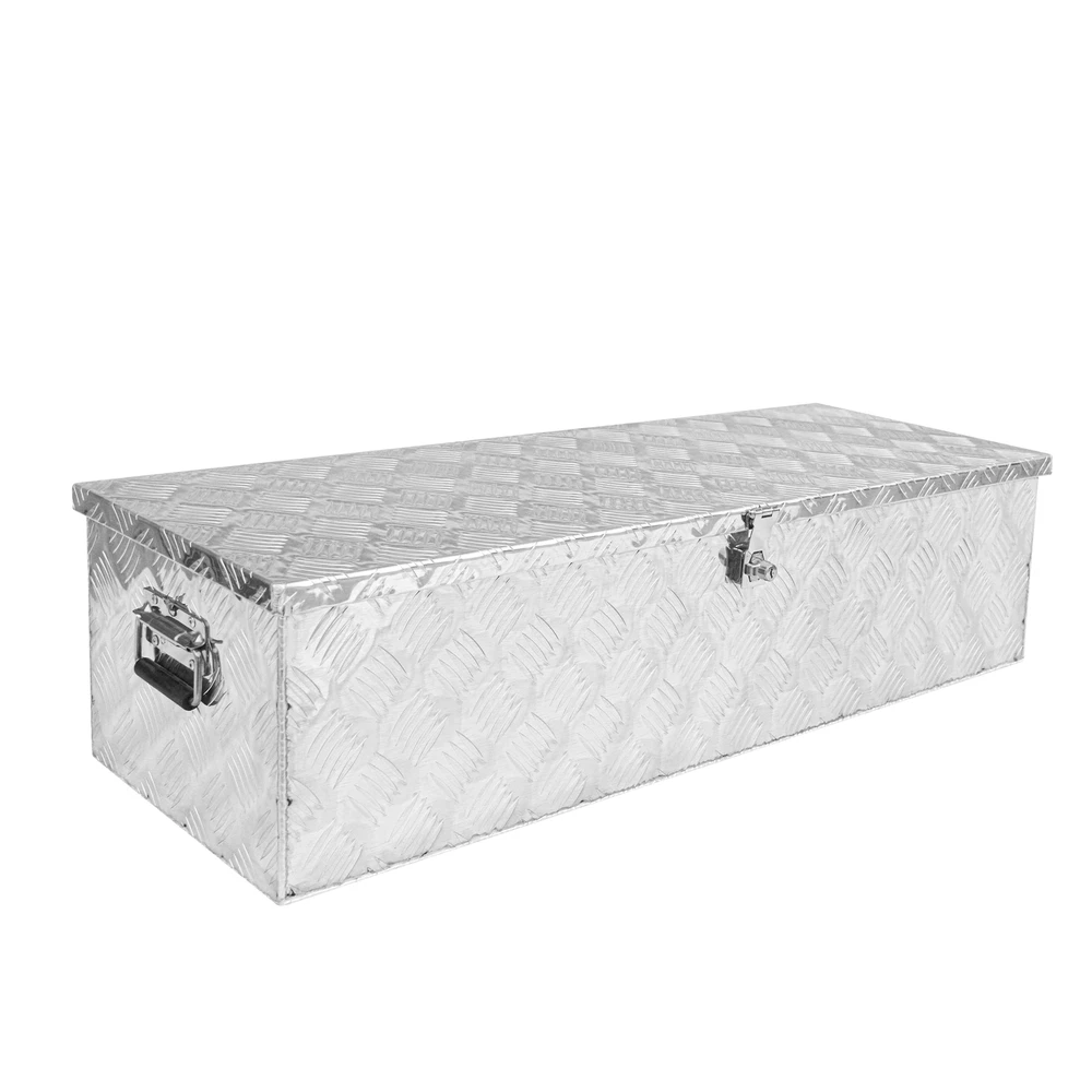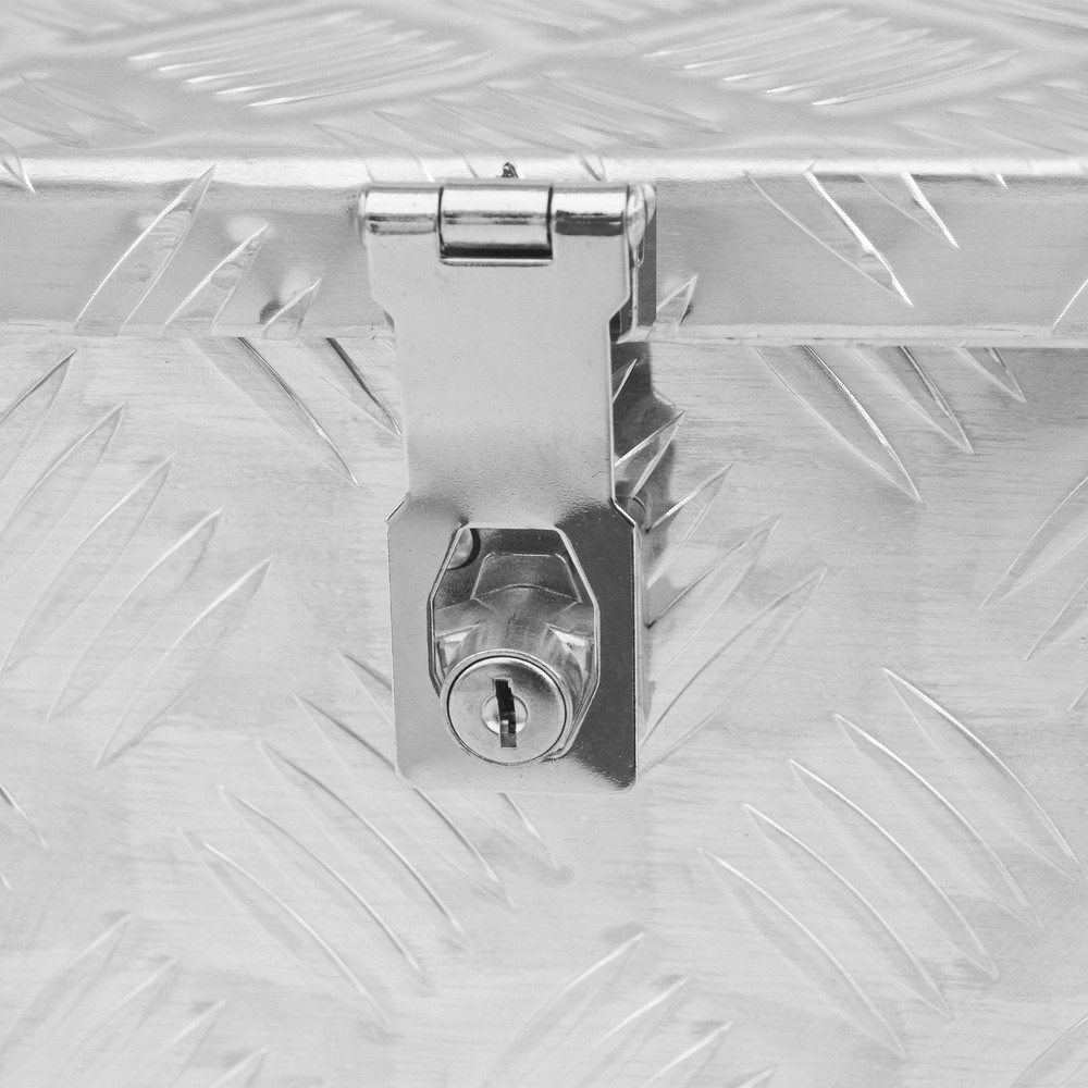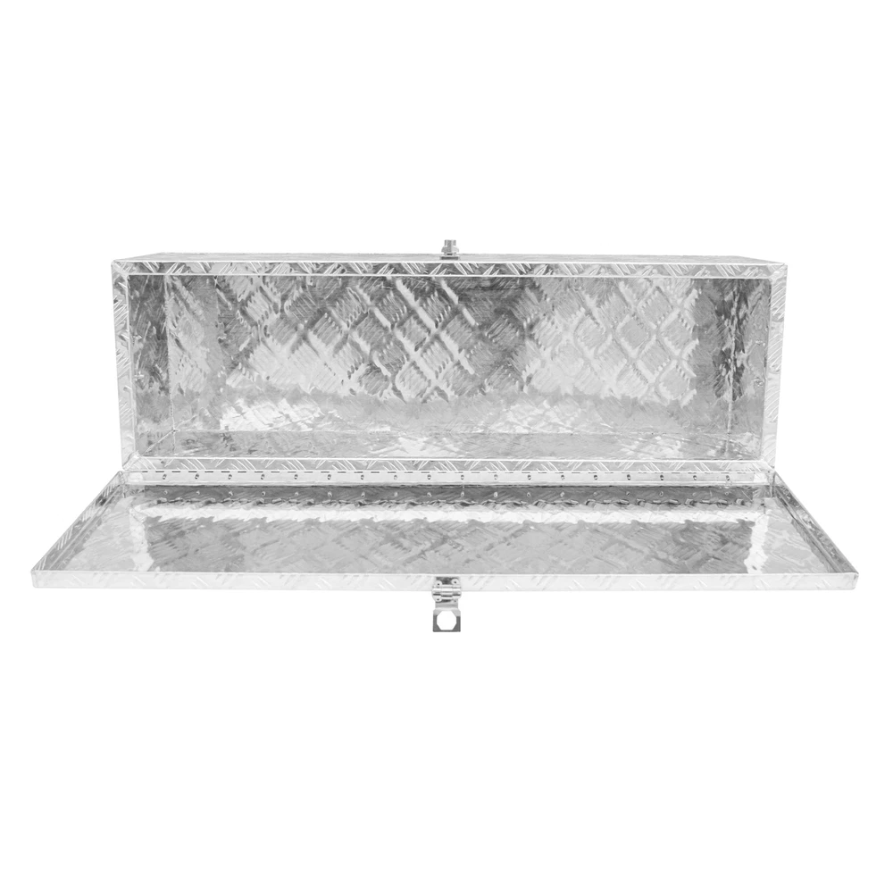 This aluminum toolbox is a game-changer for truck and trailer owners! The sturdy 5-bar tread design keeps everything secure, and the lock adds peace of mind. Lightweight yet durable, it fits perfectly under the vehicle to maximize bed space. The spacious interior easily holds tools and gear, while the sleek silver finish looks great. Installation is straightforward, and the included keys are a nice touch. Perfect for keeping your essentials organized and protected on the go!