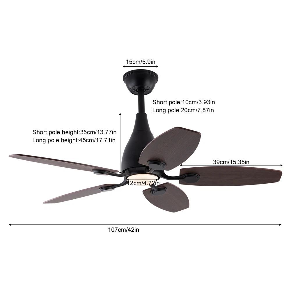 3-Color Ceiling Fan Light With LED Light Ceiling Fan With Remote Control Timing Description Fan or chandelier? This is too difficult to make a decision. Now, you don't have to choose because our ceiling fan light has combined the two. The combination of high-quality materials and exquisite craftsmanship makes it sturdy and durable. Fan speed and time-setting can be easily adjusted by remote control, providing you with a smarter and more convenient life. With its stylish appearance, it can better decorate your room! Key Features Sturdy and Durable: The iron with a painting process makes it sturdy and resistant to impact, deformation, corrosion, and rust, ensuring an extended service life. Excellent Light Source: The environment-friendly and energy-saving LED light with variable light colors ( warm, cold, neutral ) and color temperature ( 3000-4500-6000K ) can effectively avoid glare and stroboscopic, protect your eyes, restore the most authentic color of objects, and meet your different needs. Two-way Rotation: The normal mode of the fan can bring coolness in summer. You can also reverse the direction of the fan in winter, blowing hot air from the top into the room and increasing the indoor temperature. Healthy and Energy-saving: The ceiling fan light provides more comprehensive air circulation and cooling, thereby reducing the frequency and time of air conditioning use, saving energy, and reducing expenses. It can avoid direct blowing and reduce the risk of air conditioning diseases. Low Noise: The pure copper motor makes the product operate at a noise level of approximately 35dB, which is as quiet as a soft-speaking voice. This allows you to enjoy a peaceful and quiet environment. Smart Control: You can set the timing function(1/2/4/8H) to have a comfortable sleeping environment and the 6-speed wind speed to experience the refreshing breeze or strong coolness through the convenient remote control, simplifying your daily routine and enhancing your overall living experience. Multiple Functions: This item integrates lighting and a fan, illuminating the space while balancing room temperature, and meeting your usage needs. Ideal Gift: With its beautiful appearance and powerful functions, you can give it as a housewarming or holiday gift to your friends, family, or colleagues. Easy to Clean: Thanks to the simple structure and smooth surface, you can easily wipe it clean with a rag. High Applicability: The wide voltage range of 85-265V can adapt to the voltage needs of most households, so you can use it with confidence . Details Stable Base: The 5.9" thickened and enlarged base ensures stronger load-bearing capacity and stability. Closed Shade: The closed shade effectively prevents impurities, etc. from entering and its high light transmission provides good lighting for your house. Upgraded Blades: 5 fan blades adopt an aerodynamic design, providing a stable and powerful air supply with low noise. Selectable Suspension Rods: The 3.93" and 7.87" suspension rods provide you with the flexibility to install this ceiling fan light according to your needs. Application With a lighting area of 107.64-161.46ft². It is ideal for the living room, dining room, hotel, club, restaurant, kitchen, study, bedroom, meeting room, etc. Specification Material: Iron Process: Painting Color: Black , Dark Brown Style: Modern Shape: Round Motor Type: Pure Copper Motor Indoor/Outdoor Usage: Indoor Mount Type: Ceiling Mount Control Mode: Remote Control Number of Fan Blades: 5 Light Color: Neutral, Cold, Warm Light Efficiency: E Light Source: LED(Included) Voltage: 85-265V Power: 45W Noise: 35dB Timing: 1/2/4/8H Number of Gears: 6 Battery Type: 2 * AAA Batteries(Included) Remote Control Distance: 3-5m/9.84-16.4ft Color Temperature: 3000K, 4500K, 6000K Lighting Area: 10-15m²/ 107.64-161.46ft² Pole Length: 10cm/3.93in or 20cm/7.87in Lampshade Diameter: 12cm/4.72in Fan Blade Length: 39cm/15.35in Base Diameter: 15cm/5.9in Product Overall Diameter: 107cm/42in Product Overall Height: 35cm/13.77in or 45cm/17.71in Package Included 1* Ceiling Fan Light 1* Remote Control 1* English Manual Other Accessories for Assembly Notes Please make sure that the size of the ceiling fan matches your room and carefully make a choice. Please make sure the power is cut off before installation and when you clean the light. The surface of the product and the electric wire should avoid scratching when mounting, and electric insulation gloves(not included) must be worn when installing. To ensure your safety, professional ones with an electric license are recommended to carry out the installation if possible. Please read the English manual carefully before use, and pay special attention to the safety tips inside. Please do not bend the blades when calibrating and cleaning the fan. Please allow the slight color difference caused by the shooting light and 1-3cm error due to manual measurement, and make sure you do not mind before ordering. Payment Delivery details Terms of sales About us Contact us Payment We accept ebay payment 。 Fees such as import duties, taxes are not included in the item price or shipping costs. These charges are the buyer's responsibility. Delivery details Shipping: 2-9 working days to: USA Terms of sales We maintain high standards of excellence and strive for hundred percent customer satisfaction. Feedback is very important to us. We hope that you contact us immediately before you give neutral or negative feedback, so that we can address your concerns. It is impossible to address issues if we do not know about them! About us Your satis faction is our ultimate goal. We work hard to earn your trust and future business. Our certified technicians have tested each item before shipping. The unit comes with 1 year limited warranty on all manufacturing defects. a) If you receive a defective item, you may return it or ask for a discount. Please contact us within 14 days after you receive the package. b) What you returned must be inta