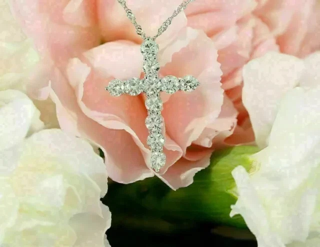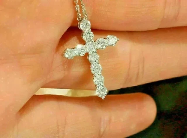 Main Stone: Diamond Base Metal: Sterling Silver Total Carat Weight: 3.00 Carat(Approx) Secondary Stone: Diamond Pendant Shape: Cross Seller Notes: “?***$$$Valentine-day Big Sale Offer *$$?” Setting Style: Prong Cut Grade: Excellent Chain Type: Round Link Main Stone Treatment: Not Enhanced Personalize: Yes Features: Engraved Closure: Spring Ring Metal: Sterling Silver Type: Pendant Customized: Yes Main Stone Shape: Round Main Stone Color: White Colored Diamond Intensity: Fancy Main Stone Creation: Lab-Created Occasion: Anniversary, Birthday, Christmas, Engagement, Valentine's Day, Wedding Brand: Jewelryforyou-7 Metal Purity: 925 Color: White Diamond Color Grade: D Gemstone Clarity Grade: Eye Clean Material: Stone, Metal Wholesale: Yes Theme: Beauty Diamond Clarity Grade: Very, Very Slightly Included (VVS1) Necklace Length: 18 in Style: Charm Seller Warranty: Yes Certification: NA