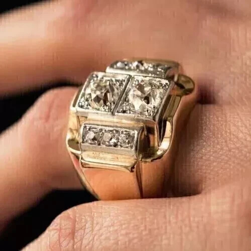 $ 51.963.00Ct Round Cut Moissanite Men's Engagement Wedding Ring 14k Yellow Gold Plated