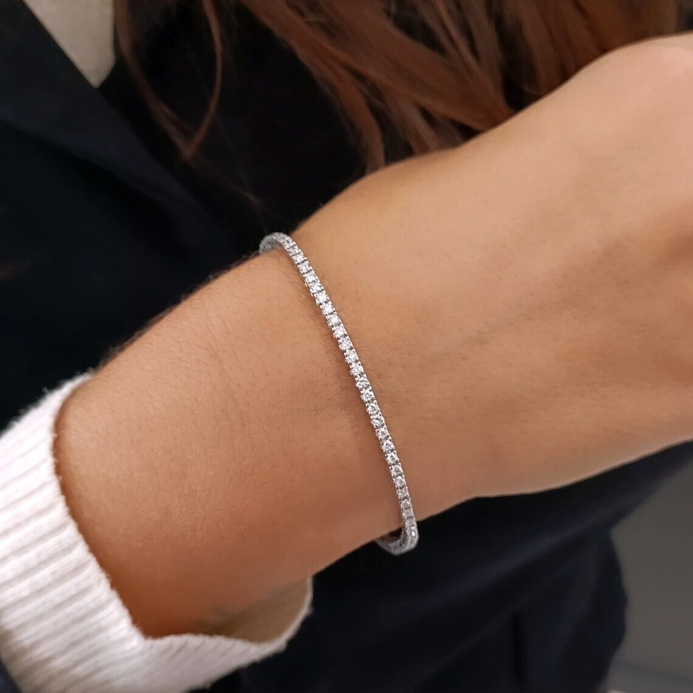 The brilliance of the stones is amazing! The look of elegance on my wrist compliments my rings and clothing. I love my purchase which arrived in a timely manor.. I will have no problem purchasing from this seller again.