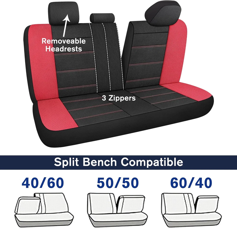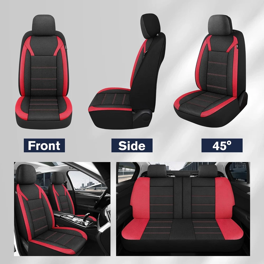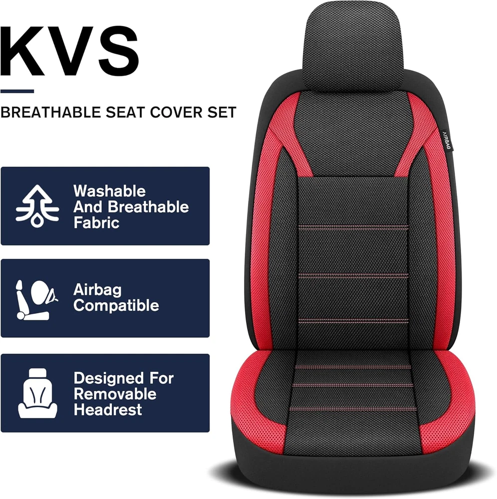 Store New Arrivals Add to Favorite View Feedback Contact 3D Air Mesh Car Seat Covers Full Set, Breathable Split Bench Compatible Seat Covers for Cars, Universal Car Interior Covers for Most Sedan Truck SUV Vans(Black/Red) Description Item model number 2210100203 Color Black/Red Country of Origin China Manufacturer Part Number 2210100203 Item Weight 2.77 pounds Size Full Set Package Dimensions 14.88 x 11.42 x 6.5 inches Fit Type Universal Fit Material Polyester Auto Part Position Rear 【Breathable 3D Mesh Fabric】Enjoy optimal airflow and ventilation with our innovative design, keeping you cool and comfortable during those long drives and hot summer days. Crafted from high-quality mesh material, our seat covers provide excellent breathability, allowing air to circulate freely and preventing discomfort from sweat and moisture buildup. 【Universal Fit】 Universal fit car seat covers, designed to fit a variety of vehicles including sedans, trucks, SUVs, and even commercial vehicles. Made from high quality materials, If you're unsure whether our seat covers are compatible with your vehicle, our team is here to assist you in confirming the fit. 【Airbag Compatible】Designed with safety as our top priority, our universal car seat covers are compatible with airbags and won’t interfere with seat belt buckles. For the rear seat cover, a simple cut with scissors enables easy accommodation of the seat belt buckle. These covers fit various seat sizes and shapes, offering protection against spills and everyday wear. 【Easy Installation】We strive to provide a hassle-free experience for our customers. Our comprehensive installation manual ensures a smooth and efficient setup, whether you’re a seasoned car enthusiast or a beginner. Install our seat covers effortlessly within 10-20 minutes and get ready to hit the road. 【Spilit Bench Compatible】Providing a seamless fit for different rear seat configurations, our seat covers are designed with versatility in mind. The split design ensures the utmost protection for your seats while allowing easy removal of the center console armrest whenever needed. Perfect for 40/60, 50/50, and 60/40 split rear seats. Product Description About KVS KVS is an automotive brand devoted to enhancing the comfort and style of your driving experience. Our wide array of premium products is tailored to elevate and protect the interior of your car. From seat covers to elegant car floor mats and beyond, each item in our collection is skillfully designed. KVS has the ideal solution for your automotive interior needs. Count on our brand to elevate your driving experience with comfort and sophistication. KVS 3D Air-Mesh Breathable Car Seat Cover Universal Fit for Most Cars, SUVs, Trucks, Vans, Pick-ups Our seat covers are thoughtfully designed with a specially engineered mesh fabric that allows for optimal airflow, bringing comfort even during long drives or hot summer days. Meticulous attention to detail keeps their durability and resistance to tears, stains, and fading, keeping your car’s interior looking pristine for years to come. Breathable Airbag Compatible Universal Fit Easy to Install Instantly Refresh Your Car Interior Ensure dependable seat protection from everyday wear and tear, spills, stains, and sun-induced fading. Enhance your car’s interior aesthetics and infuse vibrant hues into your life. Airbag Compatible Designed with a universal side design, our seat covers seamlessly accommodate airbag deployment during emergencies for your utmost safety while driving. Experience enhanced protection for both you and your seats. Drive with confidence, knowing your safety is our top priority. Spilit Bench Compatible Our seat covers are designed to fit various car seat configurations, such as 40/60, 50/50, and 60/40 split bench seats, as well as non-split bench seats. To ensure a secure fit without compromising the functionality of seat belts, simply use scissors to create an opening at the seat belt buckle area during installation. Breathable With their breathable mesh fabric, our seat covers offer excellent ventilation, keeping you fresh and comfortable during your daily commute or long road trips. Stay cool and sweat-free, even on hot summer days. KVS Breathable Fabric Car Seat Cover Compatibility Guide Compatible Seat Types: 1.Detachable Headrest 2.Air Compatible 3.Split Bench 4.Solid Bench 5.Cup Holder 6.Molded Headrests Incompatible Seat Types: 1.Non-datachable Headrest 2.Bulit-in Seat Belt Easy Installation 1.Installation Instruction Manual: We provide a detailed instruction manual for easy installation. Enjoy the convenience and enhanced aesthetics of your new seat covers. 2.Designed to fit split rear benches of 50/50, 40/60, or 60/40 s plit configurations, our covers feature a zipper design that allows freedom of movement for the back seat. Note that the rear seat cover needs to be cut with scissors at the seat belt buckle after installation. Add to Cart Add to Cart Add to Cart Add to Cart Add to Cart Customer Reviews 4.0 out of 5 stars 116 4.0 out of 5 stars 116 4.0 out of 5 stars 116 4.0 out of 5 stars 116 4.0 out of 5 stars 116 Price $39.99 $ 39 . 99 $41.99 $ 41 . 99 $41.99 $ 41 . 99 $41.99 $ 41 . 99 $41.99 $ 41 . 99 Fit(Front) Universal Fit Universal Fit Universal Fit Universal Fit Universal Fit Fit(Rear) Universal Fit Universal Fit Universal Fit Universal Fit Universal Fit Color Black Black/Gray Black/Red Black/Beige Black/Blue Material Air-Mesh Fabric Air-Mesh Fabric Air-Mesh Fabric Air-Mesh Fabric Air-Mesh Fabric ABOUT US We offer the best prices around on high quality products. Our E-store includes media such as books, movies, music and games while offering electronics, toys, sporting apparel, clothing, tools, general home, garden items and more. SHIPPING We are always working hard to ensure your package arrives as soon as possible. Please understand that some factors like weather, high postal traffic, and the performance of shipping companies are o