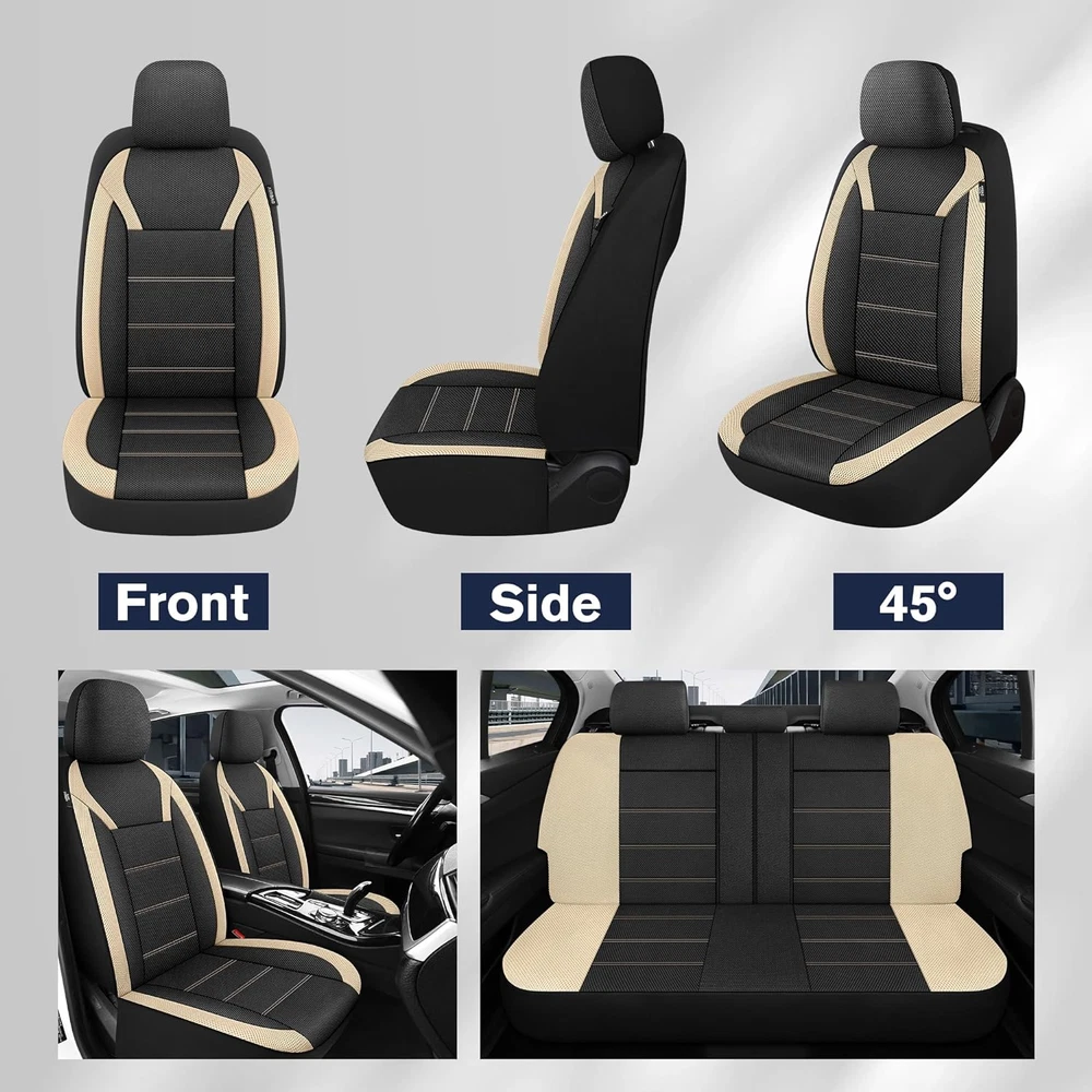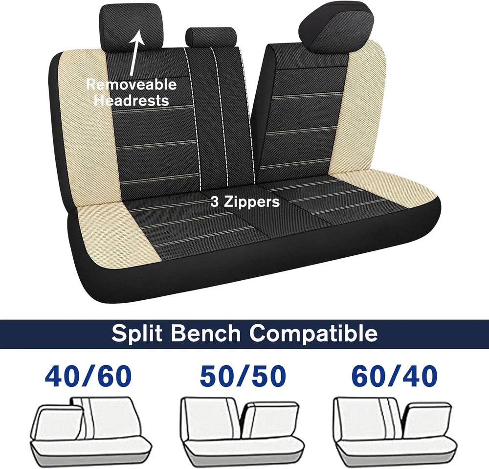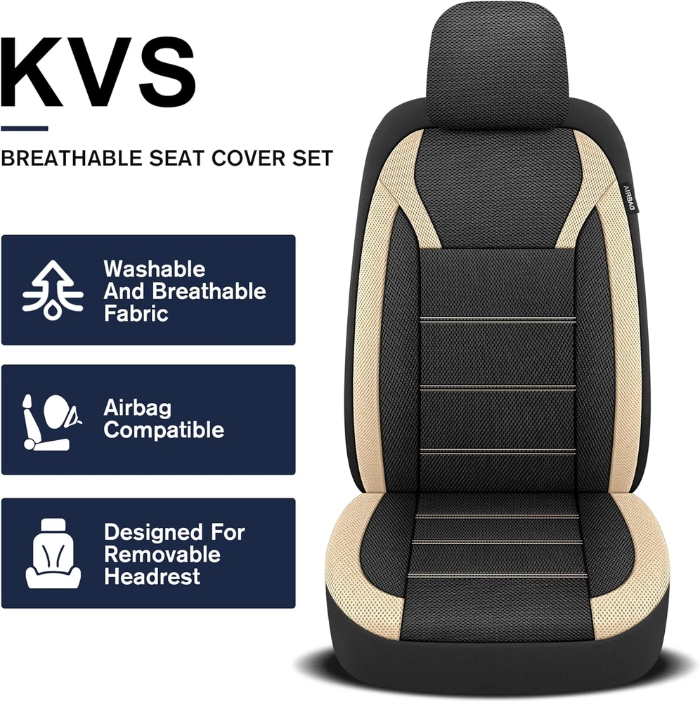 Store New Arrivals Add to Favorite View Feedback Contact 3D Air Mesh Car Seat Covers Full Set, Breathable Split Bench Compatible Seat Covers for Cars, Universal Car Interior Covers for Most Sedan Truck SUV Vans(Black/Beige) Description Item model number 2210100204 Color Black/Beige Country of Origin China Manufacturer Part Number 2210100204 Item Weight 2.68 pounds Size Full Set Package Dimensions 14.92 x 11.46 x 6.34 inches Fit Type Universal Fit Material Polyester Auto Part Position Rear 【Breathable 3D Mesh Fabric】Enjoy optimal airflow and ventilation with our innovative design, keeping you cool and comfortable during those long drives and hot summer days. Crafted from high-quality mesh material, our seat covers provide excellent breathability, allowing air to circulate freely and preventing discomfort from sweat and moisture buildup. 【Universal Fit】 Universal fit car seat covers, designed to fit a variety of vehicles including sedans, trucks, SUVs, and even commercial vehicles. Made from high quality materials, If you're unsure whether our seat covers are compatible with your vehicle, our team is here to assist you in confirming the fit. 【Airbag Compatible】Designed with safety as our top priority, our universal car seat covers are compatible with airbags and won’t interfere with seat belt buckles. For the rear seat cover, a simple cut with scissors enables easy accommodation of the seat belt buckle. These covers fit various seat sizes and shapes, offering protection against spills and everyday wear. 【Easy Installation】We strive to provide a hassle-free experience for our customers. Our comprehensive installation manual ensures a smooth and efficient setup, whether you’re a seasoned car enthusiast or a beginner. Install our seat covers effortlessly within 10-20 minutes and get ready to hit the road. 【Spilit Bench Compatible】Providing a seamless fit for different rear seat configurations, our seat covers are designed with versatility in mind. The split design ensures the utmost protection for your seats while allowing easy removal of the center console armrest whenever needed. Perfect for 40/60, 50/50, and 60/40 split rear seats. Product Description About KVS KVS is an automotive brand devoted to enhancing the comfort and style of your driving experience. Our wide array of premium products is tailored to elevate and protect the interior of your car. From seat covers to elegant car floor mats and beyond, each item in our collection is skillfully designed. KVS has the ideal solution for your automotive interior needs. Count on our brand to elevate your driving experience with comfort and sophistication. KVS 3D Air-Mesh Breathable Car Seat Cover Universal Fit for Most Cars, SUVs, Trucks, Vans, Pick-ups Our seat covers are thoughtfully designed with a specially engineered mesh fabric that allows for optimal airflow, bringing comfort even during long drives or hot summer days. Meticulous attention to detail keeps their durability and resistance to tears, stains, and fading, keeping your car’s interior looking pristine for years to come. Breathable Airbag Compatible Universal Fit Easy to Install Instantly Refresh Your Car Interior Ensure dependable seat protection from everyday wear and tear, spills, stains, and sun-induced fading. Enhance your car’s interior aesthetics and infuse vibrant hues into your life. Airbag Compatible Designed with a universal side design, our seat covers seamlessly accommodate airbag deployment during emergencies for your utmost safety while driving. Experience enhanced protection for both you and your seats. Drive with confidence, knowing your safety is our top priority. Spilit Bench Compatible Our seat covers are designed to fit various car seat configurations, such as 40/60, 50/50, and 60/40 split bench seats, as well as non-split bench seats. To ensure a secure fit without compromising the functionality of seat belts, simply use scissors to create an opening at the seat belt buckle area during installation. Breathable With their breathable mesh fabric, our seat covers offer excellent ventilation, keeping you fresh and comfortable during your daily commute or long road trips. Stay cool and sweat-free, even on hot summer days. KVS Breathable Fabric Car Seat Cover Compatibility Guide Compatible Seat Types: 1.Detachable Headrest 2.Air Compatible 3.Split Bench 4.Solid Bench 5.Cup Holder 6.Molded Headrests Incompatible Seat Types: 1.Non-datachable Headrest 2.Bulit-in Seat Belt Easy Installation 1.Installation Instruction Manual: We provide a detailed instruction manual for easy installation. Enjoy the convenience and enhanced aesthetics of your new seat covers. 2.Designed to fit split rear benches of 50/50, 40/60, or 60/40 s plit configurations, our covers feature a zipper design that allows freedom of movement for the back seat. Note that the rear seat cover needs to be cut with scissors at the seat belt buckle after installation. Add to Cart Add to Cart Add to Cart Add to Cart Add to Cart Customer Reviews 4.0 out of 5 stars 116 4.0 out of 5 stars 116 4.0 out of 5 stars 116 4.0 out of 5 stars 116 4.0 out of 5 stars 116 Price $39.99 $ 39 . 99 $41.99 $ 41 . 99 $41.99 $ 41 . 99 $41.99 $ 41 . 99 $41.99 $ 41 . 99 Fit(Front) Universal Fit Universal Fit Universal Fit Universal Fit Universal Fit Fit(Rear) Universal Fit Universal Fit Universal Fit Universal Fit Universal Fit Color Black Black/Gray Black/Red Black/Beige Black/Blue Material Air-Mesh Fabric Air-Mesh Fabric Air-Mesh Fabric Air-Mesh Fabric Air-Mesh Fabric ABOUT US We offer the best prices around on high quality products. Our E-store includes media such as books, movies, music and games while offering electronics, toys, sporting apparel, clothing, tools, general home, garden items and more. SHIPPING We are always working hard to ensure your package arrives as soon as possible. Please understand that some factors like weather, high postal traffic, and the performance of shipping companies 