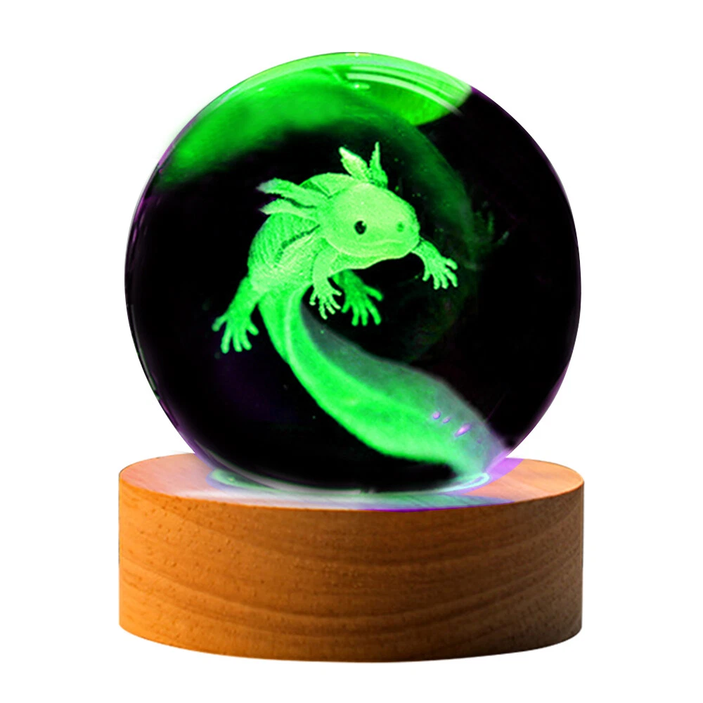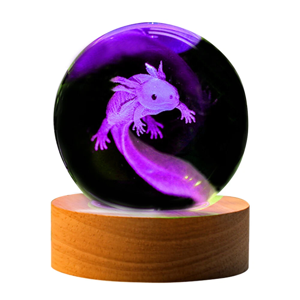 Features: 1. One crystal balls, one base with one USB cable. 2. Our 3D salamander crystal ball light is a colorful gradient light consisting of red, green, blue, yellow, and purple. It can emit light when plugged in. Please note that it needs to be connected to a power source through a USB cable. 3. The crystal ball is made of crystal, free of impurities, scratches, flaws, and bubbles. And advanced 3D laser engraving technology carves clear, vivid, and three-dimensional models. Long term use still maintains its original luster. 4. The crystal ball is intricately carved with clear 3D patterns inside, creating a warm and dreamy atmosphere under soft lighting, bringing a romantic artistic sense to your home. It is both a night light and a very beautiful decoration. Suitable for bedrooms, living rooms, children's rooms, study rooms, corridors, or any style of space. 5. The perfect gift for children, women, friends, and family on any holiday, including birthdays, Valentine's Day, Mother's Day, wedding anniversaries, Thanksgiving, Christmas, graduation ceremonies, and Father's Day. Specifications: Packaging size: 10cm * 10cm * 7.2cm 350g Product Appearance: Axolotl Scope of use: Children's room lighting, bedroom lighting, children's gifts Product Material: Crystal+Wood Product voltage: 5V Package List: Crystal ball * 1+base * 1 Note: Due to manual measurement, please allow for a slight error. Please make sure you don't mind before bidding. Due to differences in monitors, colors may vary. Please understand. On Jan 21, 2025 at 19:19:47 PST, seller added the following information: