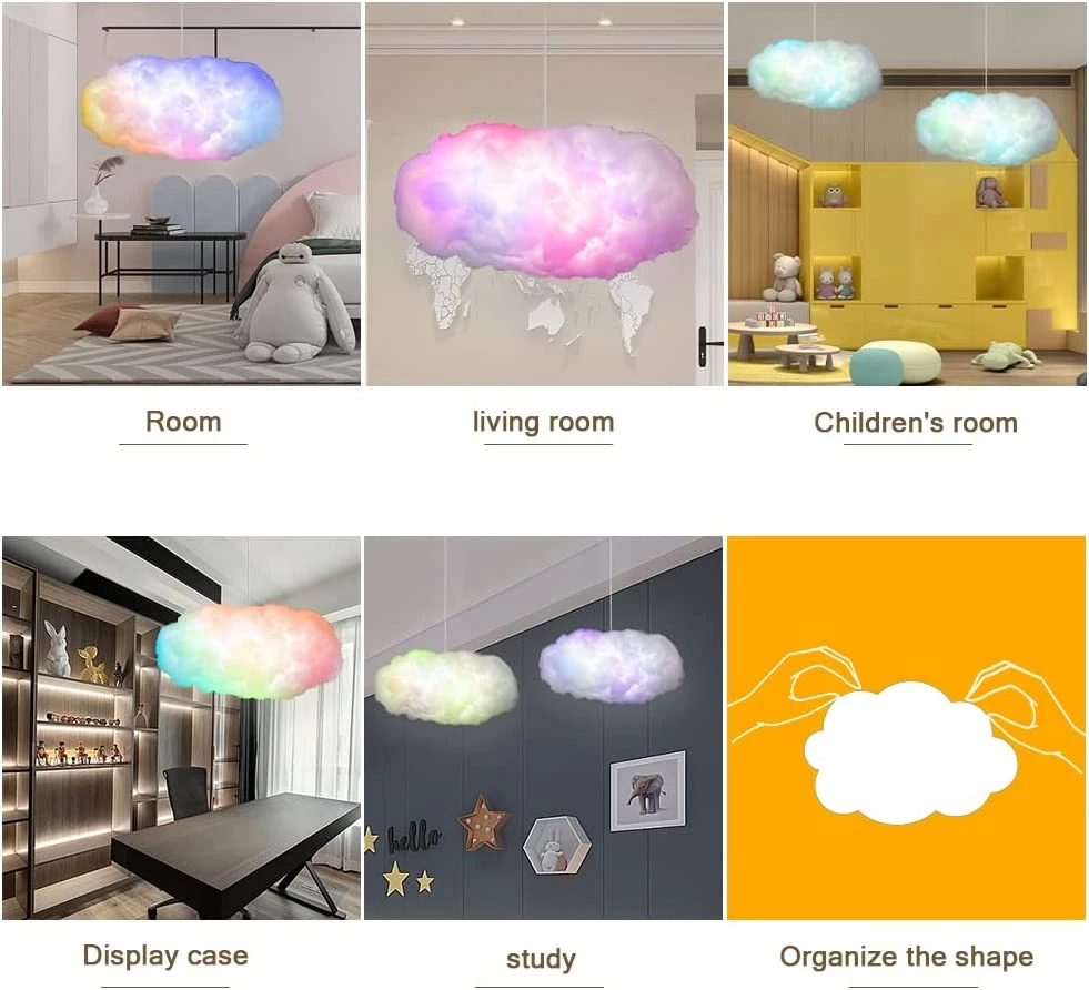 ☁Package Included and Size: This Big Cotton Cloud lightning Light has a perfect size L:60-70CM.W:35-40CM Cloud lightning Light+USB with APP controll+360 Degree Wireless 2.4G Music remote controller + 2PCS Ceiling buckle. 🌈Multi COLOR CHANGING SYNC WITH MUSIC-Cloud lightning Light colorful and durable, Can simulate lightning clouds.the brightness of the lights can be adjusted and offer millions different colors.Bluetooth strip light Music has a smart music mode, built-in sensitivity adjustable microphone, you can choose any music to beat with it, then color will changing accordingly. If thunder is played at the same time, it will bring out a cooler cloud lightning effect. 🎶Widly Use:This Cloud lights not only can you install it to your Child's bedroom, you can also install it to the your bedroom, kitchen,display, etc.It can also be used on IG, YouTube, Facebook, Tik tok videos, this will be the coolest background. ⚡Easy to Use and Install:It is easy to Install, just put the ceiling buckle wherever you want to decorate.And take the cloud lamp out of the compression bag and grab it slightly to hang it up. Power by USB,can be used any devices with 5V adapter.Such as USB socket ,USB connector,Power bank. 📢Product Warrantyand Customer Service: Long life span more than 50,000 hours. Let you use our led strip lights set with confidence.If you have any questions or concerns, message us! We will always get back to you within 24 hours for any issues or questions. Bluetooth connection method: 1. Scan the QR code to download the app: duoCo Stripx. 2. Turn on the Bluetooth of the mobile phone (no need to pair the Bluetooth) directly open the downloaded app and wait for 5-10 seconds to connect automatically. 3. If it has not been connected, power off the light and restart, or restart the phone, and repeat steps 1-2. Product Description Bluetooth connection method: Scan the QR code to download the app: duoCo Stripx. Turn on the Bluetooth of the mobile phone ( no need to pair the Bluetooth ) directly open the downloaded app and wait for 5-10 seconds to connect automatically. If it has not been connected, power off the light and restart, or restart the phone, and repeat steps 1-2. Package Included 1 X Big Cloud lightning Light 1 X USB with APP controll 1 X 360 Degree Wireless 2.4G Music remote controller 1 X 2 PCS Ceiling buckle Parameters Color:Colorful Voltage :5 V Music Sync Note:NON-WATERPROOF Suitable for many places bedroom living room window Display case Children's room kindergarten classroom