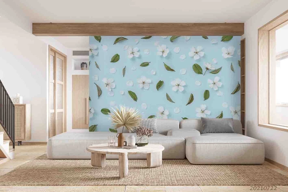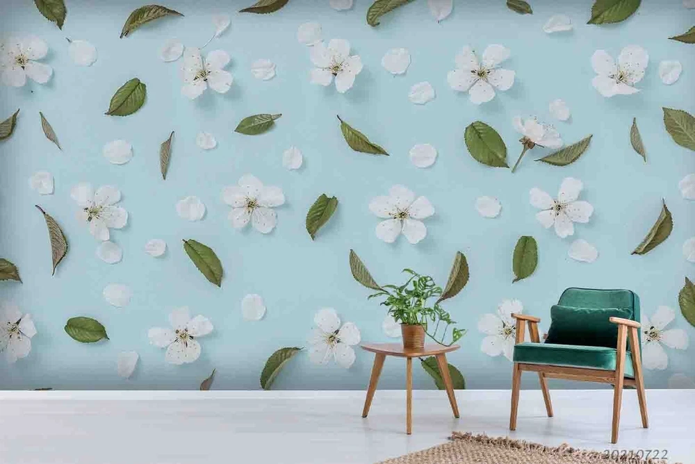 3D Blue Floral Leaf Pattern Wall Murals Wallpaper Murals Wall Sticker 888