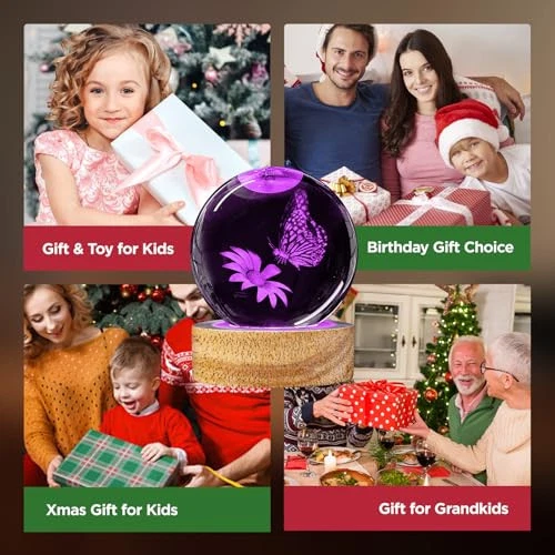 Return Policy Fast Delivery Trusted seller 3D Butterfly Flower Crystal Ball Night Light Butterfly Gifts for Women, 60mm Butterfly Figurines Glass Ball Lamp with Remote Butterfly Home Decor Birthday Xmas Gifts for Butterfly Lovers Kids Teens Product Description ?【16 Colors to Brighten a Nice Night】Our 3D Butterfly Crystal Ball Lamp have 16 colors and 4 modes. You can use the remote control to choose the color of your favorite lights and adjust the intensity of the lights. You can easily control this night light even when you are lying in bed. (Please Note: it need to connect power via USB cable.) ?【Great Value Pack】1 x Butterfly Crystal Ball ( 60mm/ 2.36inch ), 1 x LED Light Base, 1 x Remote Control, 1 x USB Cable, 1 x Beautiful Gift Box, 1 x Microfibre Cleaning Cloth (easy to clean and wipe). ?【Lifelike Butterfly Home Decor】The inside of the crystal clear ball is engraved with exquisite and clear 3D patterns, under the illumination of soft light, it creates a warm and dreamy atmosp, bringing a romantic artistic sense to your home. It is both a night light and a very beautiful decoration. Suitable for bedroom, living room, children's room, study, hallway or any style of space. ?【Premium K9 Crystal & 3D Laser Engraving】The Butterfly figurine glass desk light is made of high-quality K9 crystal materials, and the interior images are carved by advanced 3D laser engraving technology, it's vivid and clear. Even after a of use, crystals never lose their original shine. When you rotate the crystal ball, the built-in colorful LED light will project a stunning luminous aperture on the ceiling. ?【Ideal Gift】Great gift for women, men, kids, friends, girls, boys and families at any festival. Like birthday gifts, retirement gifts, Valentine's Day, wedding gifts, anniversary gifts, Christmas gifts, holiday gifts, Easter gifts, mother’s day gifts, graduation gifts, Father's Day gifts, Thanksgiving gifts, sympathy gifts, housewarming, and all seasonal gifts. Shipping Returns Payment Shipping Shipping is FREE to all addresses other than APO/PO boxes in the lower 48 states. All our stock ships from US-based warehouses. Shipped via USPS or UPS (depending on location and package weight) Unless stated otherwise, all orders will ship within 24-72 hours of your payment being processed. Check our feedback to see the great reviews of FAST shipping we offer. Returns Seller does not accept returns Payment We currently accept payment via eBay managed payments only. Once payment is cleared, we will dispatch your shipment within 1-3 business days. Please refer to the "Shipping" tab for more information regarding shipping speed to your destination.