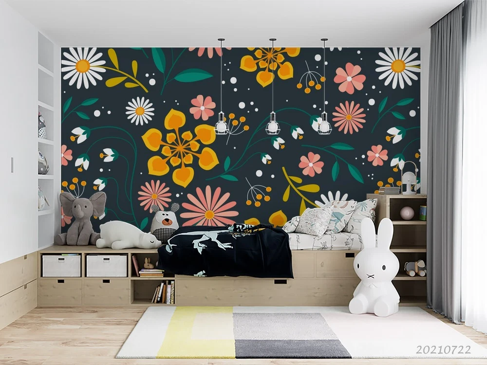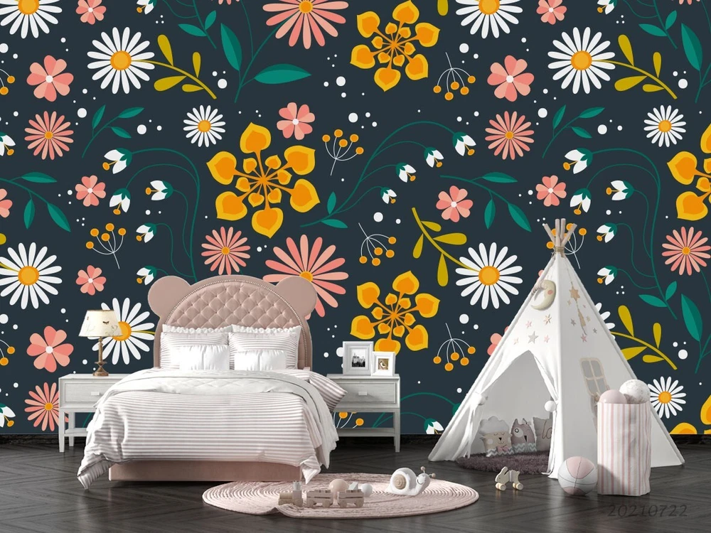 3D Cartoon Colorful Floral Leaves Wall Murals Wallpaper Murals Wall Sticker 5