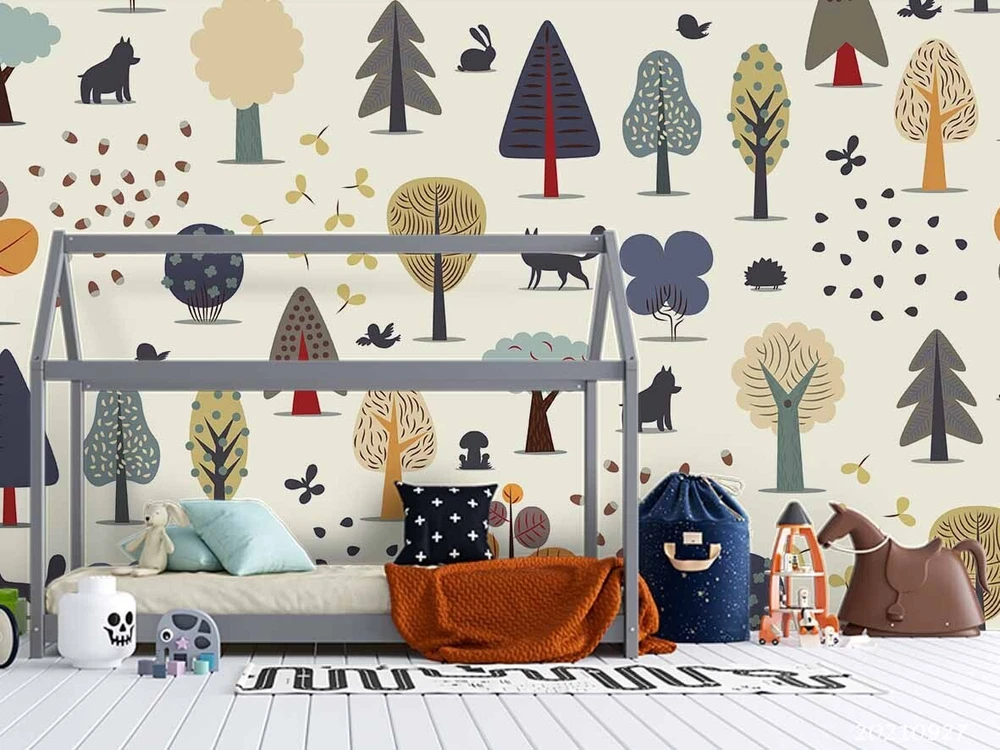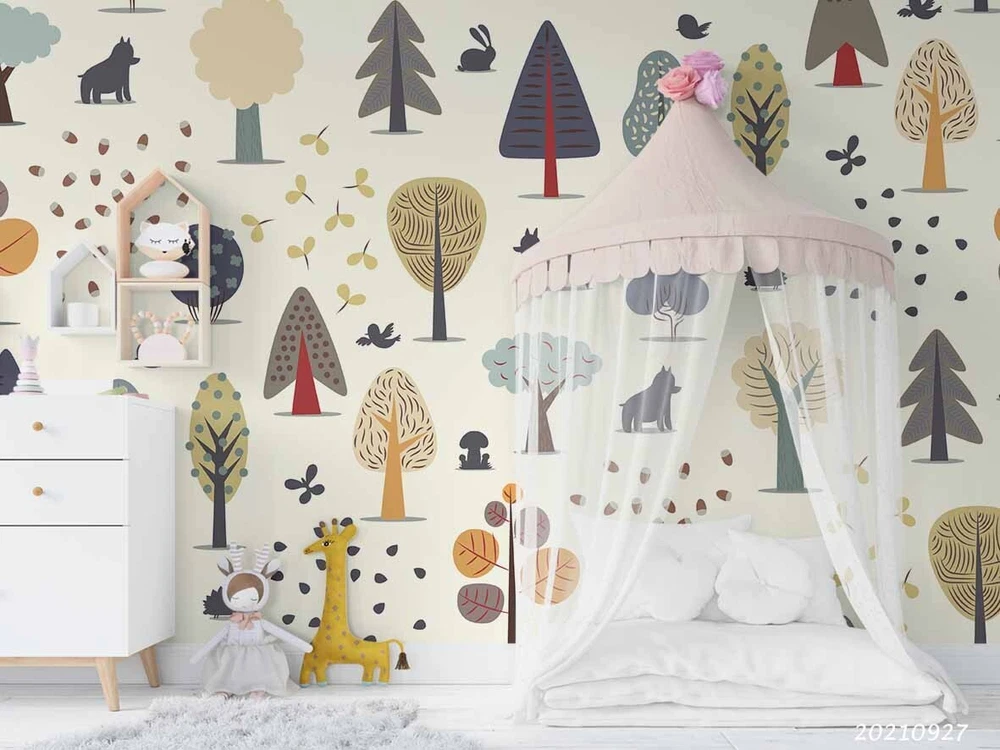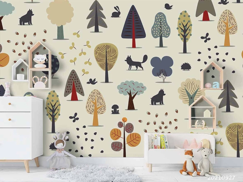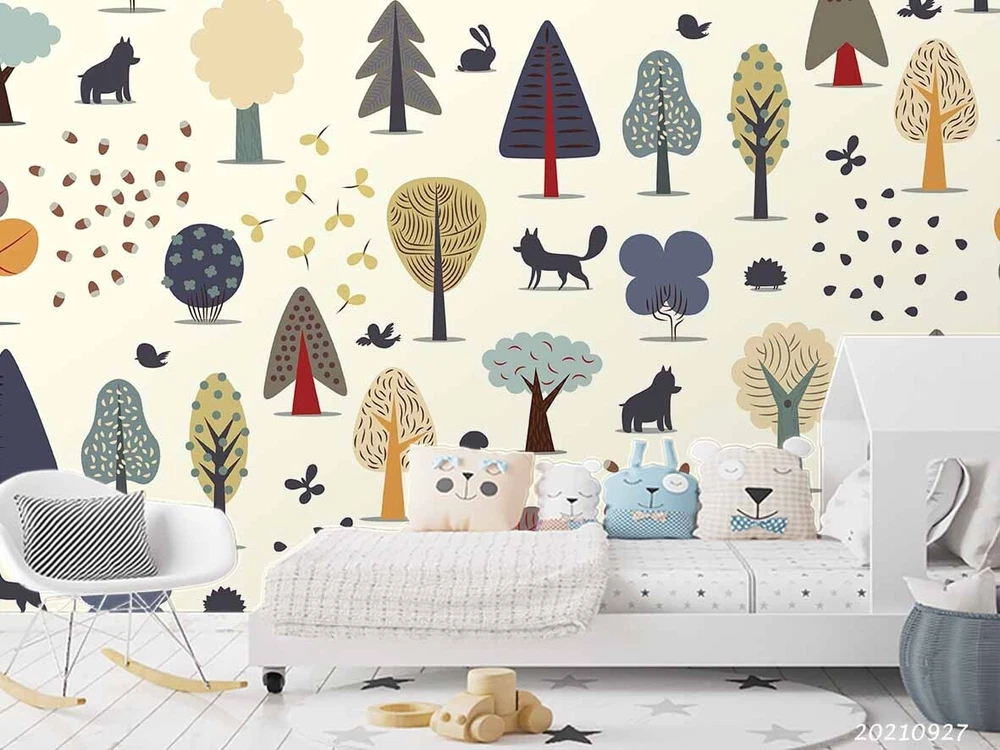 3D Cartoon Forest Tree Animal Wall Murals Wallpaper Murals Wall Sticker 120
