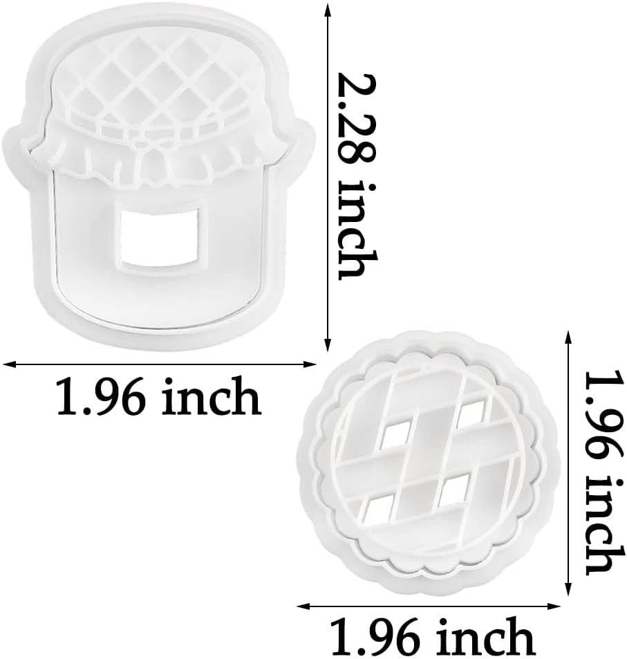 【Jam Cookie Cutter Set】4pcs/set creative jam sandwich cookie cutter set, included 2 pieces outer dies and 2 pieces inner cookie stamp mold. The cookie outer molds and inner cookie stamps need to be used together, the set include 2 sets of cute mini jam cookie cutters in different shapes, perfect for making handmade sandwich cookies. 【Small Cookie Cutters】Our sandwich cookie cutters are small and cute, the round cookie cutter measures about 5x5 cm /1.97x1.97 inches, and the jam jar shaped cookie cutter measures about 5.8x5 cm/2.28x1.97 inches, and the cutting height is about 1.2 cm/0.47 inches.(The size information is manual measurement, please allow a difference of about 1cm due to manual measurement.) 【Plastic Cookie Stamps】All cookie stamp molds are made of food grade plastic, serviceable and lightweight, not easy to deform or break, smooth surface will not scratch your hands or children, durable material make them can be used multiple times, We recommend hand washing with warm water and drying after use to maximize the life of the biscuit cutter. 【DIY Sandwich Cookies】These jam sandwich biscuit mold can be used to make a variety of sandwich cookies, you can choose the right filling according to the taste you and your family and friends like to make your favorite sandwich cookies, Jam filling includes but is not limited to chocolate jam, strawberry jam, blueberry jam, tomato sauce, mango jam, bean paste, etc. 【Practical Baking Tools】The plastic biscuit cutter mold set is easy to use, can help baking enthusiasts make a variety of flavors of sandwich cookies, is a good helper for diy jam sandwich cookies. You can also use these cute and practical molds with your children to make your favorite handmade cookies, and cultivate your children's interest in baking and hands-on skills. Product Specification Item Name: Jam Sandwich Cookie Cutters Type: Cookie Molds Material: Food-grade Plastic Color: White 2 Shapes: Round, Mini Jam Jar Round Size: About 5x5cm/1.97x1.97in Jam Jar Size: About 5.8x5cm/2.28x1.97in Cutting height: About 1.2cm/0.47in Used for: DIY cookies, biscuits, fondant, steamed buns, pie crusts, puddings, mousse, pastries, clay, etc Occasion: Kitchen, Bakery, DIY Shop, etc Package Contents: 2 Sets Jam Sandwich Cookie Cutters( 2pcs/set) Product Advantages ✔Plastic Material: Food-grade plastic material, which is safe and tasteless, easy to use and clean. ✔Cartoon Shape: Creative jam cookie cutters that can make various jam sandwich cookies. ✔Jdeal Gifts: Cute biscuit molds can be used not only for personal use but also as gifts for friends who enjoy baking. ✔Multi Use: Mini cookie molds can be used for DIY jam cookies, fondant, pastries and more! ✔Easy to use: After choosing the shape they like, just press the cutter into your cookie to create a wonderful matching shaped cookie. How To Use 1. Roll out the dough to about 8-10mm flatbread. 2. Dip the mold in a little flour for easy release. 3. Press the outer mold onto the prepared cookie dough and demould to get a sandwich cookie bottom. 4. Press the outer mold onto the dough, then put the inner mold into the outer die and press it down, finally demould to get the top of the sandwich cookie. 5. Take all the shaped cookie dough to bake. 6. Once the cookies are baked, add a little jam to the bottom cookie, then place the hollowed out top cookie on top, press gently and the jam cookies are ready.