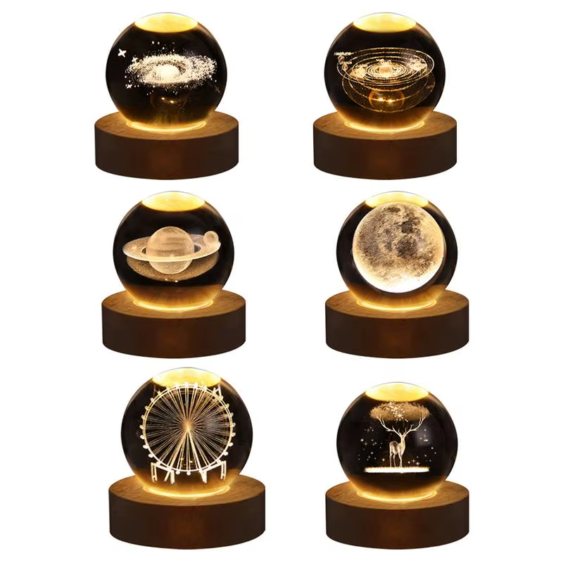 3D Moon Solar System Crystal Ball LED Night Light for Kids Room