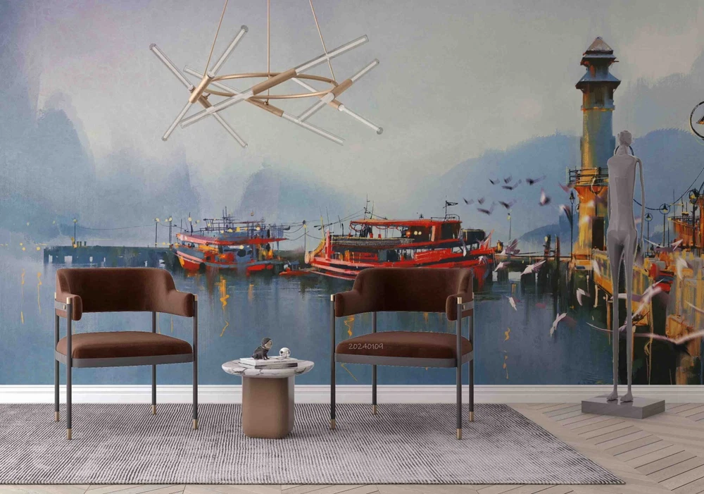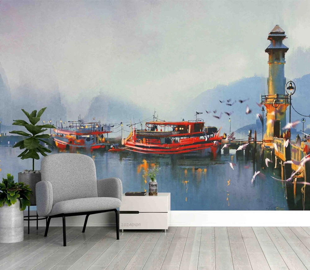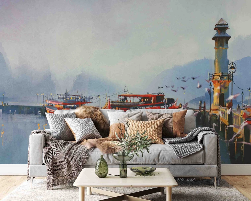 3D Mountains Lake Lighthouse Scenery Wall Murals Wallpaper Murals Wall Sticker