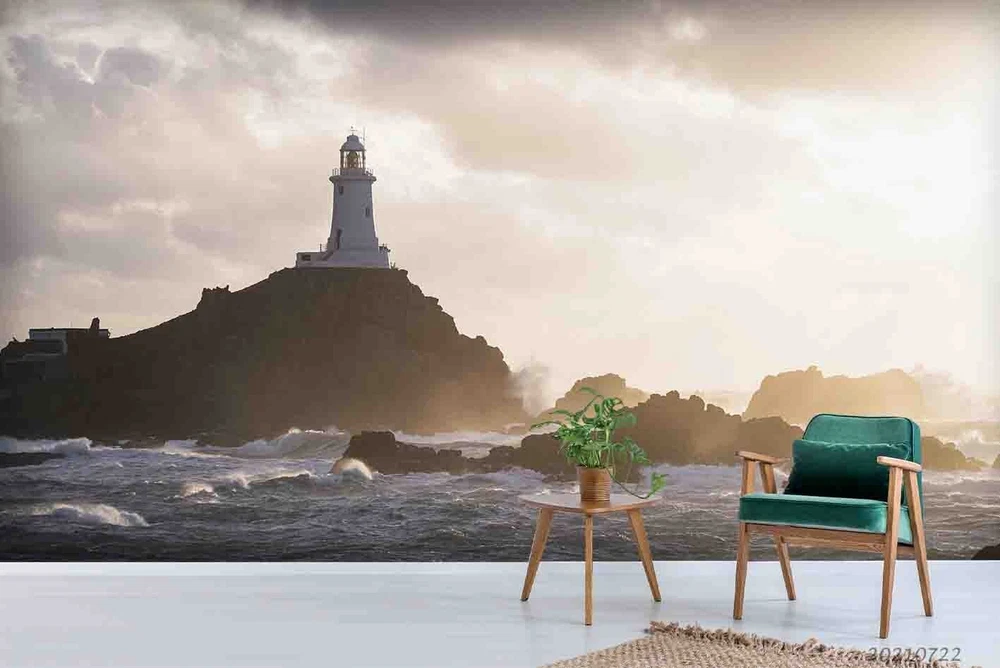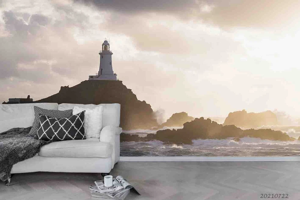 3D Ocean Mountains Lighthouse Scenery Wall Murals Wallpaper Murals Wall Sticker